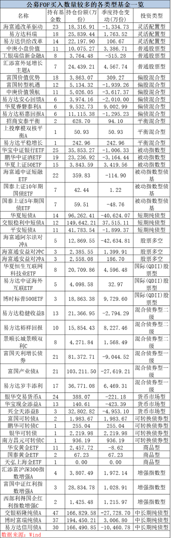 来源:中国基金报 中国基金报记者 陆慧婧 随着三季报全部披露完毕,有着“专业买手”之称的公募FOF最新持仓也随之出炉。 Wind数据统计显示,海富通改革驱动、易方达科瑞、富国价值优势三只基金是全市场公募FOF三季度持有只数最多的权益基金,相比二季度,易方达科瑞取代中庚价值领航,新进FOF“最爱”权益基金前三名。 从调仓变动上看,部分公募FOF开始超配价值风格,煤炭、国防军工等相关基金在三季度获公募FOF较大力度增持。 谈及后市,多位FOF基金经理认为,当前A股估值处于较低水平,市场有望呈现短期震荡中期向上的格局。同时,部分基金经理也在密切关注美债、黄金等反脆弱性资产的投资机会。 海富通改革驱动、易方达科瑞、富国价值优势 成公募FOF基金“团宠” 随着公募基金旗下三季报披露完毕,FOF基金经理新一季基金配置清单也重磅出炉。 ![]() Wind数据显示,海富通改革驱动在三季度末获23只公募FOF重仓买入,从数量上看,是目前公募FOF买入数量最多的权益基金(权益基金指股票基金加上混合基金),这也是海富通改革驱动连续第五个季度问鼎公募基金“团购”榜首。 具体来看,汇添富聚焦经典一年持有、国泰君安(13.400, -0.18, -1.33%)君得益三个月持有、中信证券(17.220, -0.38, -2.16%)财富优选等基金在三季度均重点配置海富通改革驱动基金,其中更有包括汇添富养老2040、海富通平衡养老目标、广发锐意进取等7只基金将海富通改革驱动作为前三大重仓基金。 不过,从持仓数量上看,三季度末公募FOF合计持有海富通改革驱动基金份额1.83亿份,相比二季度减持了1334.73万份,持有海富通改革驱动的FOF基金数量也相比二季度下降了1只。 据相关资料介绍,海富通改革驱动基金成立于2016年4月28日,基金经理周雪军过往长期以均衡投资风格著称,截止今年三季度末,成立以来收益率达到226.68%,过去三年收益133.50%,业绩也排名同类基金前四分之一水平。 易方达科瑞则在三季度取代中庚价值领航,新进公募FOF买入只数榜前三。Wind数据显示,共有18只公募FOF三季度重仓持有易方达科瑞,合计持有份额2.58亿份,相比二季度持有的FOF基金只数增加了6只,环比增持了1763.52万份。据悉,易方达科瑞基金经理杨嘉文是逆向投资选手,他擅长逆势投资,关注估值被错杀的个股,对于基本面坚固或出现好转信号的公司敢于重仓买入,分享估值修复带来的收益。 富国价值优势也是公募FOF“买基”榜单的常客,富国价值优势是一只运用“基本面增强”策略做沪深300增强的基金,wind数据显示,三季度末也有18只公募FOF重仓买入富国价值优势,尽管持有的FOF数量相比上一季度下降了两只,但合计持仓份额增长了309.26万份,三季度末持仓份额达到,863.07万份。 相比起重点持仓基金,增持榜单更能反映出FOF基金经理对后市的看法。据Wind数据统计,被动指数基金增持前三“花落”国泰中证军工ETF、富国中证军工龙头ETF、华夏中证新能源汽车ETF;灵活配置混合基金中,易方达积极成长、汇添富盈鑫、易方达裕如位列公募FOF增持份额前三;偏股混合基金增持前三则被易方达远见成长、易方达国防军工、易方达改革红利占据;股票基金增持前三分别为汇添富中国高端制造、中欧医疗创新、汇添富外延增长主题;平衡基金增持前三则是易方达平稳增长、招商安泰平衡、上投摩根双核平衡;偏债混合基金增持前三依次为华夏睿磐泰利、易方达丰惠、易方达安盈回报。尽管其中部分基金是被自家内部FOF买入,但也可以在一定程度上反映公募FOF的持仓变化。 三季度权益仓位偏向价值风格 增配煤炭、军工等行业配置比例 三季度A股大幅震荡,绩优FOF三季度的投资操作也是业内关注的重点,从三季度披露的情况上看,部分FOF基金经理将权益仓位偏向价值风格,也有部分FOF基金经理在三季度末进行了加仓。 兴全安泰平衡养老FOF基金经理林国怀在三季报中表示,本季度权益部分主要采取了以下操作:1、进行再平衡操作,将基金仓位下调到中枢附近;2、根据既定的策略参与股票定增、大宗交易等投资机会并参与相关的策略型基金,减持解禁的股票和“封转开”的基金。 组合风格上,目前权益部分相对略超配价值风格:经过 2019-2021 年成长风格持续占优的趋势行情后,市场对于“成长性”给予了较高的溢价,所以风格上适当的欠配成长、超配价值,尤其是以高股息为主要特征的红利类指数基金;此外,过去几年市场对于估值、下行风险等角度在意程度不足,所以在组合中也适当的超配了偏绝对思路的权益型基金以及注重性价比的 GARP 型基金品种;最后,继续保持对于投向海外市场的 QDII 基金和另类资产(主要是黄金 ETF)的适度配置。 ![]() 从三季度持仓上看,易方达信用债、富国中证红利指数(0.0000, 0.00, 0.00%)增强两只基金新进兴全安泰前十大重仓基金。 “站在二季度末,我们认为在外需逐步弱化、内需主要靠基建拉动的环境下,难以支撑股市持续上行,后续或将转向震荡,组合整体保持中性仓位。之后随着国内地产问题的持续演绎,海外货币政策转向鹰派,我们认为市场风险因素在积聚,避险情绪将再度提升,在 8 月小幅反弹后,组合进行了一定的仓位下调以应对后续可能的风险释放。而随着市场调整,权益资产的相对性价比不断提升,组合之前的风险规避也为后续加仓留有一定风险剩余,因此,在近期市场大幅调整过程中,组合再次提升仓