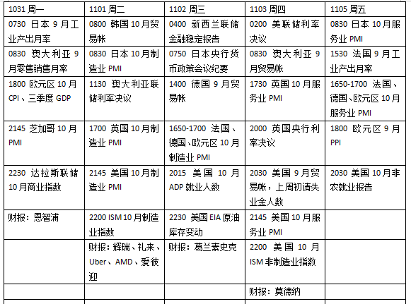 上周国际市场风云变幻,美国明星科技股业绩喜忧参半,欧央行宣布连续第二次加息75基点以应对通胀压力。 美股强劲反弹,道指周涨5.72%,纳指周涨2.24%,标普500指数周涨3.95%。欧洲三大股指全线走高,英国富时100指数周涨1.12%,德国DAX 30指数周涨4.03%,法国CAC 40指数周涨3.94%。 本周看点颇多,美联储预计将连续第四次加息75基点,加息路径线索引发关注。多国央行将发布利率决议,英国、挪威、澳大利亚和马来西亚料将跟进上调基准利率。美国将公布10月非农报告,或显示小幅降温。欧洲10月PMI终值将维持在荣枯线以下,加剧有关衰退的担忧。 美国劳动力市场或降温 美国三季度GDP年化增速2.6%,结束了此前连续两个季度回落的颓势。美国总统拜登表示,数据表明经济复苏正在继续向前推进,为降低物价政府需要采取更多行动。 美国财长耶伦谈及经济时指出,有一些健康放缓的迹象,这可能对抑制高通胀产生积极影响。耶伦仍然不认为会出现衰退,“这是一个充分就业的经济,劳动力市场火爆。我们希望看到增长放缓,这是控制通胀的一部分。”她说道,“我看到了一条在保持劳动力市场强劲的同时降低通胀的道路,我不认为会发生衰退,但如果发生了,我们仍然有足够的财政空间来应对。” 美联储本周将迎来年内倒数第二次利率决议,市场普遍预期将连续第四次加息75基点。有关政策力度可能放缓的预期正在升温。但作为美联储最关注的通胀指标之一,个人消费支出物价指数(PCE)9月止跌回升,通胀压力令12月的政策选择仍然存在不确定性。 数据方面,10月非农无疑是一大看点。目前美国劳动力市场仍保持良好状态,由于职位空缺仍然很高,强劲的劳动力市场预计将支持就业增长,但财报季中一些企业宣布调整招聘的决定值得关注。市场预期本月将新增20万个就业岗位,低于9月的26.3万个,刷新年内低位,同时失业率将小幅回升至3.6%,个人薪资增速预计进一步放缓。美国供应管理协会ISM10月PMI也值得关注,预计需求降温下制造业PMI将回落至荣枯线以下,服务业扩张速度将回落。 财报季进入中后期,本周包括医疗保健、非必需消费品、能源等行业的一批重点企业将公布业绩。值得关注的公司包括:礼来、辉瑞、CVS健康、星巴克、AMD、高通、Uber、爱彼迎、万豪酒店,马拉松石油等。 原油与黄金 国际油价上周小幅走高,投资者依然关注疫情对能源需求的影响。WTI原油近月合约收报87.90美元/桶,周涨3.35%,布伦特原油近月合约收报95.77美元/桶,周涨2.43%。 SPI asset management执行合伙人因内斯(Stephen Innes)指出,美国强劲的出口需求和美联储可能的政策转向对油价起到了积极影响,他预计美联储将在11月以后开始以较小幅度加息。不过需要关注疫情和经济放缓对能源需求的冲击压力。 随着美联储决议临近,国际金价尾盘走弱回吐周内涨幅。纽约商品交易所11月交割的COMEX黄金期货合约收报1639.60美元/盎司,周跌0.72%。 虽然市场预期美联储激进政策将结束,但不确定性依然存在。Kinesis Money市场分析师罗琳(Rupert Rowling)认为,尽管利率曲线的轨迹可能有所缓和,未来可能仍将继续攀升几个月。现在还是一个利率仍在上升的环境。“因此,黄金短期不太可能大幅上涨,更有可能在当前每盎司1650美元的水平附近盘整。” Sevens Report Research认为抄底机会可能即将到来。报告指出,当真正达到美联储鹰派情绪的顶峰时,应该会为投资黄金提供一个良好的买入机会,因为实际利率会随着更宽松的货币政策立场而下降。 英国央行或加息75基点 为了应对高通胀的冲击,上周欧洲央行连续第二次加息75基点。欧央行表示,预计未来将进一步提高利率,以确保通胀及时恢复到2%。 欧洲央行计划继续将其资产购买计划(APP)购买的到期证券的本金进行全额再投资,并修改了长期再融资业务的条款,以鼓励银行提前偿还这些多年期贷款。 欧洲央行行长拉加德表示,管委会决定在12月继续讨论如何减少在常规量化宽松(QE)计划下购买的债券,并确定关键原则。沟通缩表框架将使决策者得以在采取行动前让金融市场做好准备并评估投资者的反应。 本周欧洲将公布10月CPI数据,随着9月通胀率达到10%,市场预期10月增速将进一步升至10.3%,同时核心CPI将逼近5%。欧元区10月PMI终值也将揭晓,制造业和服务业持续处于荣枯分界线以下预示着欧洲经济正在滑向衰退的泥潭。 英国政府和财政部上周表示,原定于10月31日发布的中期财政计划将被推迟到11月17日发布。财政大臣亨特强调,首要任务是恢复经济稳定和市场对英国“有账必付”的财政纪律信心。他称,延迟发布这份税收和支出计划是希望将其建立在“尽可能准确的经济预测基础之上”,而且会反映出如何在中期内降低债务。 英国央行将召开议息会议,随着11月1日起启动量化紧缩计划,货币政策收紧继续提速。市场预期此次会议英国央行也将加息75基点,使利率推高到3.0%的高位,可关注央行最新通胀和经济前景预测。考虑到财政政策转向及经济下行压力的担忧,机构对下月央行的加息幅度下调至50基点,因为虽然通胀已经到达两位数的高位,更高的利率将对企业和家庭将造成更大冲击。 本周看点 ![]() |