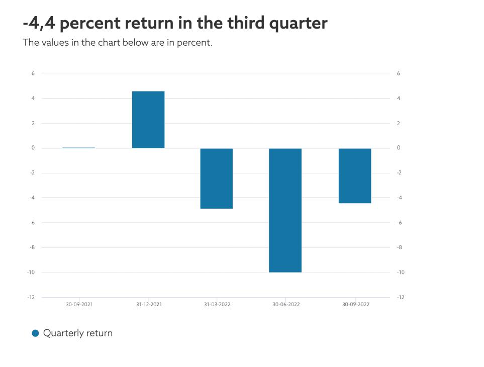 挪威政府全球养老基金运营机构挪威投资管理副 CEO Trond Grande 表示,三季度全球市场面临利率上升,通胀高企等,欧洲战事仍在持续。这些因素影响市场表现。三季度,股、债和未上市的房地产都在亏损。
