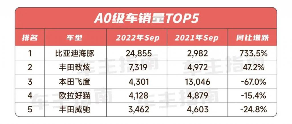 海豚一经推出即成爆款,成功搅动了整个 A0 级轿车市场。在刚刚过去的 9 月,海豚销量达到了 24855 辆,排在其身后的丰田致炫、本田飞度、欧拉好猫、丰田威驰销量加起来都不如它高。