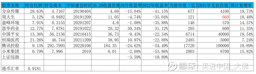 截至2022年10月28日的账户持仓如下: