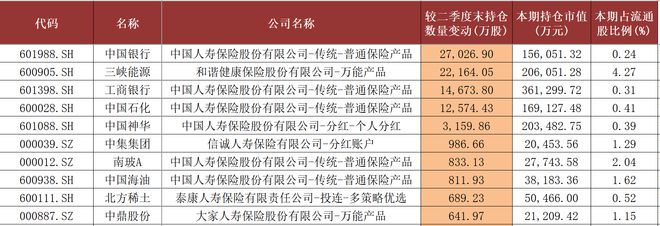 记者 | 吴绍志 随着上市公司三季报披露,追求“绝对收益”的万亿险资持股动向逐渐浮出水面。 界面新闻记者根据wind数据统计发现,若剔除国寿集团对中国人寿、平安集团对平安银行的持股市值(下同),保险资金共出现在634家上市公司2022年三季报的前十大流通股股东名单当中,持仓总市值4860.22亿元,较二季度末减少765.75亿元。 具体到个股持仓市值,银行股依旧是险资最为重要的投资板块,市值前十名中,有7只是银行股。 ![]() 表:险资持仓市值前十。数据来源:Wind、界面新闻研究部整理 其中,招商银行(600036.SH)保持险资持仓市值个股榜首,共计19.36亿股,总市值651.43亿元。兴业银行(601166.SH)、浦发银行(600000.SH)次之,总市值均超400亿元。平安银行(000001.SZ)、民生银行(600016.SH)、工商银行(601398.SH)、华夏银行(600015.SH)、邮储银行(601658.SH)的持仓市值都在百亿以上。 不过,银行股三季度下跌明显,险资持仓市值较二季度末都有所下滑。Wind二级行业统计中,银行板块三季度累计下跌8.71%,招商银行、兴业银行、工商银行持仓市值下滑最多,分别为169.79亿元、90.77亿元、65.44亿元。 有所不同的是,招商银行、工商银行都遭到了险资减持,减持总股数分别有1013.28万股和11.09亿股。 非银行股中,险资重点持仓了金地集团(600383.SH)、保利发展(600048.SH)两只地产股,和通信巨头中国联通(600050.SH)。 从增持数量来看,银行、能源是险资加仓的重头戏,中国人寿加仓格外积极。 ![]() 表:险资三季度增持股数个股前十。数据来源:Wind、界面新闻研究部整理 中国人寿连续两个季度大力度加仓中国银行(601988.SH),二季度、三季度分别加仓了9485.82万股、2.70亿股,最新持股数量已翻倍至5.05亿股,总市值15.61亿元。 在已公布业绩的国有六大行中,仅中国银行实现不良贷款率和不良贷款余额“双降”。截至2022年9月末,该行不良贷款率为1.31%,较上年末下降0.02个百分点;不良贷款余额为2279.04亿元,较上年末减少191.12亿元。 与中国银行情况类似,工商银行也获得了中国人寿连续力挺,二季度、三季度分别增持2.59亿股、1.47亿股,目前持有8.31亿股,总市值36.13亿元。 除了银行股,中国人寿对传统能源股也十分感兴趣,相中了中国石化(600028.SH)、中国神华(601088.SH)和中国海油(600938.SH)。 受经济衰退预期、地缘政治风险等因素影响,前三季度国际油价宽幅震荡,布伦特原油现货均价为102.5美元/桶,同比增长50.8%。中国石化、中国海油前三季度分别实现营业收入2.45万亿元、3111.45亿元,同比增长22.6%和78.97%。但由于产业链成本增高,主要化工产品需求疲弱、毛利收窄,中国石化归母净利润同比下滑5.6%,是“三桶油”中唯一下滑的公司。 煤炭龙头中国神华今年收获颇丰。煤炭平均销售价格上涨,售电量和平均售电价格增长,促使公司煤炭和发电业务利润大增,前三季度实现营业收入2504.89亿元,同比增长7.5%;归母净利润591.31亿元,同比增长45.0%。公司股价连续3个季度收涨,10月有所回调,最新股价为29.36元/股。 此外,风电龙头三峡能源(600905.SH)获得和谐健康保险青睐,三季度增持2.22亿股。公司前三季度业绩实现两位数增长,但股价波动较大,三季度股价累计下跌10.20%,最新股价为5.65元/股。 从减持的个股来看,险资对银行、能源板块的看法存在分歧。 ![]() 表:险资三季度减持股数个股前十。数据来源:Wind、界面新闻研究部整理 中国人寿力挺的工商银行,遭到平安人寿大力度“甩卖”。数据显示,平安人寿自2017年四季度就稳居工商银行十大股东名单,截至目前只有3个季度进行了减仓,今年力度尤其明显,一季度、三季度分别减持了7.36亿股、12.56亿股。 受益于油气价格上升,新潮能源(600777.SH)实现了营收翻倍,但国华人寿选择落袋为安。公司股价二季度累计上涨38.34%,随后不断走低,国华人寿在三季度减持6784.12万股。 值得注意的是,相比于中国人寿积极入市,大家人寿正大面积减仓。三季度期间,大家人寿重点减持了金地集团(600383.SH)、创业慧康(300451.SZ)、广州发展(600098.SH)、航天发展(000547.SZ)、中科曙光(603019.SH)等个股,减持数量都在千万级别。 展望后市,某大型保险资管人士向界面新闻记者表示,从3-6个月中期维度看,考虑到股债吸引力等估值指标给出的信号,在回撤可控的前提下,适度逆向增配也具备明显中期收益空间,建议积极参与本轮市场超跌反弹。 配置结构上,上述人士认为,围绕安全/自主可控/国产替代逻辑,可能出现一批未来政策支持引发趋势性改善的行业,包括军工、以高端通用芯片/核心电子器件/半导体设备/基础软件与操作系统等为代表的自主可控、以新一代信息技术/新能源/新材料/设备零部件为代表的高端制造、以基因与生物技术/高端医疗设备为代表的生物医药等,这也将是市场中期结构性机会的重要来源。 泰康资产研究部认为,短期来看,建议整体延续“新兴成长+低估值高股息”相对均衡的配置思路。当前成长赛道处于产业周期上行、高景气阶段,但部分高景气赛道前期成交额占比提升太快,可能需要消化,风格性价比在逐步减弱,但风格反转需要数据企稳或政策预期催化,目前仍建议均衡配置,积极把握结构性机会,后续风格确立需着重关注地产或消费是否会出现更加明确的拐点。 中长期来看,泰康资产研究部表示,风格趋势取决于相对业绩,从目前来看,新兴产业略占优,而传统产业基本面向上的弹性更多取决于经济复苏
