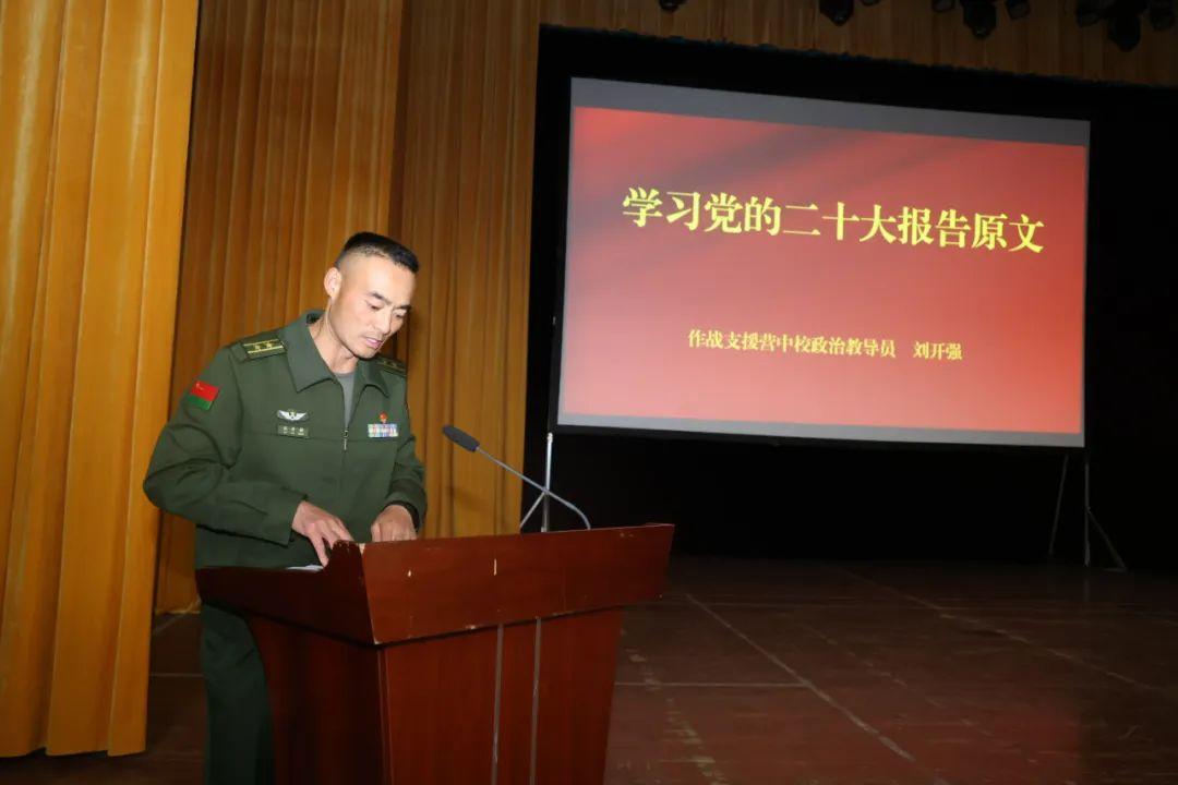 ![]() 作者 |杨昭、孟鹏、王豪飞 连日来,第七十五集团军某旅结合部队实际多措并举,持续掀起学习党的二十大精神热潮。该旅党委集中统筹,第一时间组织部队官兵观看开幕盛况,并迅速制定学习计划、开展相关学习活动。 ![]() 首长机关集中观看党的二十大开幕盛况 旅队各级及时跟进会议进程,迅速开展学习交流。通过更新信息视窗、制作专题板报、读报评报和主题演讲等丰富有趣、形式多样的配套活动增强官兵学习动力,切实把学习焕发出来的热情转化为实干的激情。 ![]() 旅召开“学习贯彻党的二十大精神专题会议” ![]() 组织官兵学习“党的二十大报告原文” ![]() 官兵认真记录 ![]() 利用“学习强军”app学习党的二十大精神 ![]() 利用“信息视窗”学习党的二十大精神 全旅官兵深受鞭策和鼓舞,旅队各级专题组织讨论交流,通过“强军故事会”“热点话题大家谈”等多种形式宣讲学习二十大报告精神。官兵纷纷站上讲台,交流学习体会。 ![]() 强军故事会 ![]() 交流学习感悟 ![]() 撰写心得体会 通过开展“非凡十年,我的强军记忆”演讲比赛、“学习二十大、赞颂新成就”歌咏比赛,进一步深化官兵对党的光辉历史和发展成就的情感认同。 ![]() 开展“非凡十年,我的强军记忆”演讲比赛 ![]() ![]() ![]() 开展“学习二十大、赞颂新成就”歌咏比赛 “改革没有旁观者,强军没有局外人。党的二十大胜利召开,预示我国在强国强军的道路上又迈出了一大步。作为一线带兵人,我们一定要带头深入学习领会,带领官兵第一时间把大会精神学习好、宣讲好、贯彻好。”作战支援营教导员刘开强说。 南部战区权威发布 ![]() 监制:项建勋 田军里 编审:吴贱平 曾海祥 主编:孙炳祥 责编:段江山 可 唯 版式:肖 凯 刊期:第 2070 期 投稿邮箱:nbqjh_001@163.com |