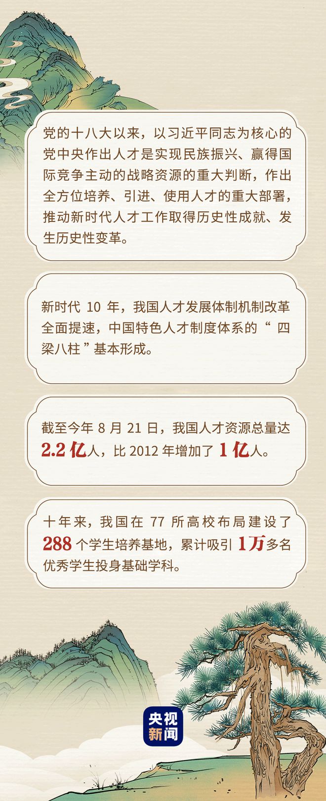 (原标题:“典”亮新征程丨功以才成,业由才广) 中华优秀传统文化源远流长、博大精深,是中华文明的智慧结晶。 习近平总书记在党的二十大报告中引用了很多中国古代经典名句,体现了中国人民的“宇宙观、天下观、社会观、道德观”,蕴含着丰富的治国理政思想智慧,彰显着历史自信、文化自信。 《“典”亮新征程》系列,与您一起学习这些古语,从中华优秀传统文化中汲取治国理政的智慧,将党的二十大精神转化为奋进新征程、建功新时代的强大力量。 ![]() ![]() 聚人才之力,筑复兴之基。 “实施科教兴国战略,强化现代化建设人才支撑”“深化人才发展体制机制改革”“全面提高人才自主培养质量,着力造就拔尖创新人才”...... 习近平总书记的重要论述,为新时代我国教育发展、科技进步、人才培养指明了前进方向,提供了根本遵循。 新征程上,在以习近平同志为核心的党中央坚强领导下,广大人才正以昂扬的姿态和卓有成效的业绩,奋力书写无愧于时代、无愧于人民的绚丽篇章。 |