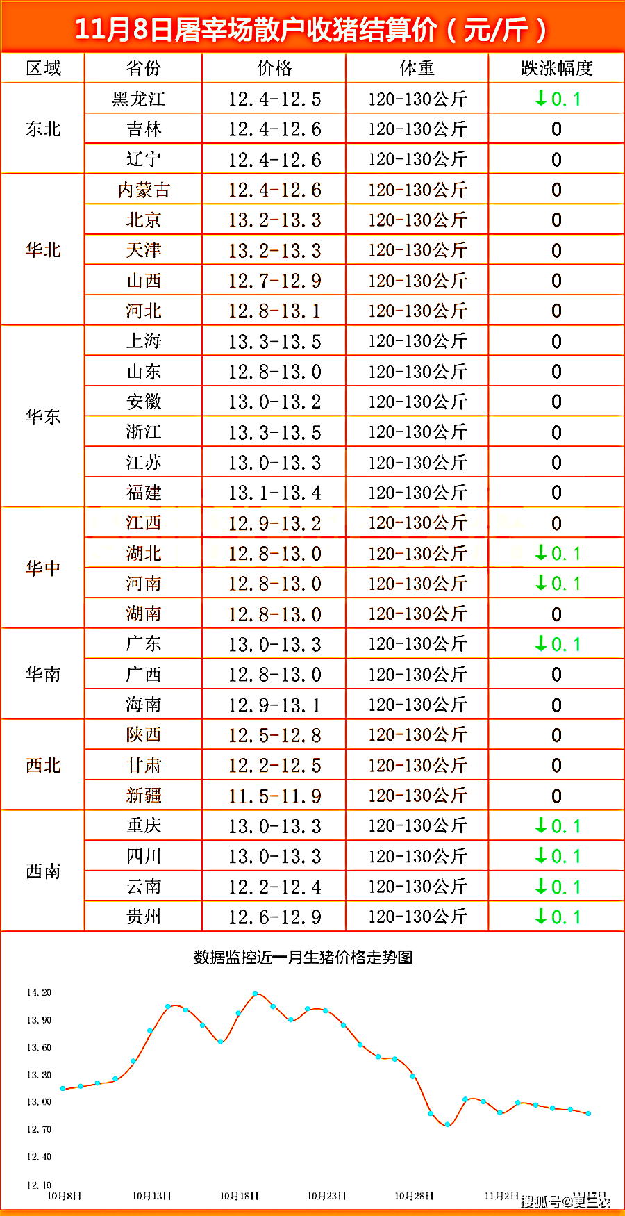 【导读】秋已末,冬已至!立冬节气到来,开启了冬天的序幕!在国内生猪市场,猪价进入偏弱运行的阶段,市场购销两淡,猪价以横盘下挫为主,那么,市场发生了啥?后期有哪些变化?我们简要讨论一下! ![]() 据屠企报价显示,受市场情绪看稳现象增多,预计,11月8日,猪价窄幅下挫,生猪均价回落0.05元/斤,国内生猪均价12.86元/斤,市场呈现窄幅下跌的态势! 在国内分区市场,猪价大稳小动,大部分行情企稳,下跌区域集中在黑龙江、湖北、河南、广东以及川渝、云贵地区,猪价窄幅下挫0.1元!国内南北大部地区,猪价以横盘企稳为主,其中,在低价市场,东北行情徘徊在12.4~12.6元/斤,而在高价地区,华南市场,两广地区,猪价徘徊在12.8~13.3元/斤…… ![]() 目前,国内猪价偏弱运行,市场呈现购销两淡的表现,立冬节气对于市场猪肉消费提振有限,由于国内口罩问题以及猪肉价格高位横盘,消费抵触情绪依然较强,需求端表现乏力,下游白条猪走货迟缓,而屠宰场下游订单量较差,屠宰场收猪积极性一般! 而在生猪供给方面,国内适重猪源流通相对顺畅,散户猪场以及集团化猪企出栏积极性一般,市场适重猪源供给较为宽松,屠宰场停计划较早,市场有一定压价的情绪,但是,在北方部分地区,标猪价格相对稳定,屠企压价难度较大,市场有横盘态势!目前,国内生猪市场,情绪稍有变化,看跌的情绪有所反弹,屠企压价支撑或将转强! ![]() 因此,受阶段性市场多空调整,预计,未来1~2日,猪价或将延续稳中震荡的表现,市场偏弱运行的趋势或将延续!而对于后市猪价的趋势,个人认为,11月中旬,猪价大概率受消费掣肘以及部分养殖户抵触低价卖猪的情绪限制,猪价或将延续横盘偏弱的趋势!而进入11月中下旬,随着消费旺季临近,集团化猪企出栏计划或将减少,养殖端扛价惜售情绪升温,猪价或将缓慢回升,月底猪价或将涨破13元/斤! 预警!猪价横盘下挫,市场购销两淡,发生了啥?11月8日猪价!对此,大家是如何看待的呢?以上仅为参考,内容原创! |