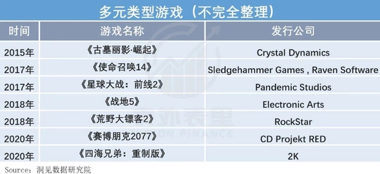 此时,日本的任天堂带着红白机游戏,趁虚先后进入美国和中国市场拓展。 任天堂社长山内溥认为雅达利失败的核心在于:“没有注重内容生态的建设,让其内容生态充斥了诸多质量一般的游戏,导致崩盘。” 基于此,任天堂红白机制定了严格的软件商规则——权益金制度,通过对软件制造商的高要求(游戏质量审核、平台准入标准等的规范),来实现游戏的高质量。 在这一制度倒逼下,诞生了《塞尔达传说》《超级马里奥兄弟》《银河战士》《精灵宝可梦》等一众画面精美、设定好玩的经典游戏。 这些游戏被顺利引入美国,到1990年,2400多万个美国家庭有了任天堂游戏机。 然而红白机游戏进入中国时,因接近千元的昂贵价格,在国内并未铺排开。 不过,“平替”的小霸王游戏机,靠着山寨任天堂,自己赚得盆满钵满——年产值超过10亿,也一定程度打开了中国游戏市场。 但好景不长,很快小霸王游戏机因危害学习遭到家长的投诉,售卖游戏机被画上了禁止符。 也就是说,中国游戏厂商缺席世界游戏崛起的第一轮“优质游戏启蒙”阶段,和美国、日本的分化出现。 而第二轮的游戏文化养成阶段,同样的情况再次上演。 任天堂开创的权益金制度,迭代了游戏品质,也为主机厂商崛起提供了标准。 90年代中期,索尼凭借比任天堂更高的开发者分成,更大的CD容量和更快的CD制作速度,成为游戏开发商的新宠——任天堂N64发行了388款游戏,索尼PS1则发行了1284款游戏。 大量高质量第三方游戏护航下,PS成功抢占美国市场。1996年,其在美国的市场份额上升到39%。 等到索尼PS2发布时,已不简单是游戏机,而是包含DVD播放、上网卡等功能,定位家庭娱乐中心。同一时期,任天堂发布第二代3D游戏机NGC,微软凭借Xbox打入主机市场。 截至2002年,美国家庭的主机渗透率接近40%,北美客厅游戏文化由此形成。 然而这一切,仍然和中国市场绝缘。 比如,索尼为了进入中国游戏市场,前后筹备了好几年——专门做了一款银色的PS2,并准备了很多款中文汉化版游戏。但公开发售仅两天,政策就下达了禁销指令。 换言之,中国游戏厂商又缺席“主机黄金时代”,错过了游戏文化的养成阶段。 而实现文化养成的北美市场,需求端持续狂热,叠加好莱坞电影工业化潮流,刺激游戏厂商不断进化: EPIC、UBI、Irrational、EA等一众游戏公司,不断迭代新引擎技术和开发经验,游戏业很快适应了快节奏流水线工作状态。 基于此,美式RPG(黑岛的《辐射》和《异域镇魂曲》)、MOD(《半衰期》)、FPG(CS)、MOBA(《魔兽争霸》)等类型游戏,一波波诞生。 ![]() 备注:根据公开资料整理。 甚至Square凭借革新RPG玩法的《最终幻想》系列,从名不见经传的小游戏公司,成为全球市值最高的十大游戏公司之一。 这也让重新定义和构造类型化巨作,成为游戏公司追逐顶流的固定模式,玩家的游戏审美被不断拔高。 举例来说,彼时电脑在北美已成为家庭必备,便利性更高。但一线游戏仍以主机为大本营——如下图,动视暴雪、EA、UbiSoft等游戏大厂的主要收入来源为主机平台。 原因是长期进化下,主机有着更稳定的显示和运行内存,游戏画质和体验感更佳。 ![]() 而这一时期的中国,主机仍在禁令下,但PC普及率出现大的提升,市场需求端急速膨胀,玩游戏成为个人可选择的娱乐方式。 但空白发展数十年的中国游戏厂商,却严重产出不足,又不甘坐视火爆起来的游戏市场和自己无关,纷纷将眼光投向“进口”,争相引进海外优质游戏。 以《地下城与勇士》为例,尚未进入中国市场运营,就已经获得百万支持者,引发了各大厂商的角逐。盛大、九城、久游、腾讯、联众等,都与韩国Neople公司前期接洽过,代理费一路水涨船高。 最终拿下代理权的腾讯,花了6个月即实现同时在线人数超百万。而同样的级别,《梦幻西游》用了20个月,《征途》是13个月。 此后,国内游戏厂商开启了以代理海外为主、自研为辅的方式,走起了捷径——直到2018年左右,腾讯推出的游戏中,绝大部分仍来自海外采买。 而国内玩家囿于可选择空间小,只能有什么玩什么,并没有形成差异化审美。 ![]() 如此看来,在通过类型化游戏培养工业化基础的阶段,中国游戏厂商仍然表现不力,自有游戏文化培养缓慢。 而这一情况,导致了风格化游戏阶段,差距进一步拉大。 2013年左右,可以看到EA、暴雪不断基于经典IP开发“年货”,每部作品大同小异;史克威尔艾尼克斯、世嘉、南梦宫万代等日系大厂,也醉心于旧IP的反复变现。 之所以会这样在于,单一类型的游戏被开发殆尽,各产品在剧情和美术素材上玩不出新的花样,行业一定程度陷入僵局。 就复盘来看,打破僵局的是“开放世界”类游戏(风格化游戏之一)。可以看到,2015年之后,各厂商的3A精品无一不是多种类型交叠的品类。 ![]() 事实上,开放世界类型很早就出现了,如2001年的《GTA3》。但囿于巨大的开发成本和较长的投入周期,一直陷于难产。 直到育碧的《刺客信条》以及《孤岛惊魂》系列,实现了开放世界“公式化创作流程”——制作周期短、投入相对低廉、回报稳定。 而这背后的支撑逻辑,是育碧对ACT类型、地图设计、玩法系统结合等制作流程的熟稔。 其实不只育碧,海外游戏厂商们在类型化游戏阶段,都不断迭代形成了优势品类开发模板和引擎。 比如,R星的Rage引擎在《R星乒乓球》《GTA4》等不断实验、迭代下,有着处理大型开放世界、复杂的人