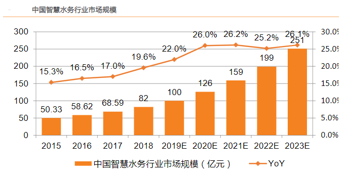 ![]() 水务行业是指由原水、供水、节水、排水、污水处理及水资源回收利用等构成的产业链。水务行业是中国乃至世界上所有国家和地区最重要的城市基本服务行业之一,日常的生产、生活都离不开城市供水。 改革开放以来,随着中国城市化进程的加快,水务行业的重要性日益凸显,已经成为社会进步和经济发展的重要支柱。 已基本形成政府监管力度不断加大、政策法规不断完善,水务市场投资和运营主体多元化、水工程技术水平提升,供水管网分布日益科学合理、供水能力大幅增强,水务行业市场化、产业化程度加深,水务投资和经营企业发展壮大的良好局面。 一、综述 1、现状 我国的水务行业长期以来具有地方垄断性强、规模化不足、产权结构单一、行业集中度低等特点。水务行业市场化改革仍存在改革目标不明晰、缺乏统一规划和配套政策支持等问题。同时,长期以来我国城市水务企业经营、管理、建造均以政府或其下属企业为主体,供水和污水业务多采取政府定价和财政补贴的形式,合理的水价形成机制仍在建立中. 2、特征 (1)区域经营垄断性强 :除了自来水厂的工程建设以外,水务行业其他的各个环节都具有典型的自然垄断性质。水务行业是资本高度密集的行业,自来水管网等固定资产生命周期很长,给水处理设施的使用年限至少为25 年,输配水管线管网的年限一般都是50 年甚至更长,通常认为进行重复建设是不符合经济效率原则的,因而只有一家企业在一定的区域内进行垄断性经营。 (2)长期发展相对稳定 :从中国的用水结构来看,变动不大,农业、工业和生活用水三者合计占比在98%左右。 (3)市场化水平低、行业盈利低微:-在中国,水务企业大多具有事业单位性质,水务行业特别是供水行业采取的是地方政府独家垄断经营的方式,行政色彩相对浓厚,供水企业的商业运作与管理创新受到较大的限制。 (4)周期性 水务行业属于基础民生行业,需求稳定,对经济周期波动的敏感性相对较低,盈利能力受能源、基础性生产资料价格的波动性影响较小。其主要周期性体现为投资建设的周期性。 (5)区域性明显 水务行业的区域性较为明显。从城市供排水业务来看,水务企业只能在其供水管网或污水收集管网覆盖的范围内开展业务,一个城市供排水业务发展受制于该城市城区及城市规划发展区域。 3、发展的前景 (1)规模企业数量不断上升 ![]() 近年来,我国水务行业的参与企业数量和市场规模持续扩大。根据国家统计局公布的数据显示,2012-2020年我国水生产和供应行业的规模以上企业数量呈现逐年增长的态势,由2012年内的1166家增长至2020年的2459家。2012年,我国水务行业规模以上企业营业收入仅为1268.8亿元;到2020年,我国水务行业规模以上企业营业收入达到3381.8亿元,同比增长6.9%。 (2)各类政策的有效推动 我国水务行业的高速发展得益于一系列水务相关政策。近年来,国家出台了一系列政策,推动我国水务行业的高质量发展、可持续发展,鼓励污水处理行业发展,为我国水环境改善奠定了政策基础。 2015年,国务院出台了《水污染防治行动计划》并提出了到2020年,全国水环境质量得到阶段性改善,污染严重水体较大幅度减少,饮用水安全保障水平持续提升,地下水超采得到严格控制,地下水污染加剧趋势得到初步遏制,近岸海域环境质量稳中趋好,京津冀、长三角、珠三角等区域水生态环境状况有所好转。 ![]() (3)市场规模不断扩大 随着城镇化和智慧城市的推进,水务行业也正在迎来一次大的发展,需求不断的增多,智慧水务的概念也在逐步的深入人心,智慧水务的市场份额也在逐步的扩大之中,面对我国这样比较窘迫的用水局面,水务行业的发展似乎又是注定的。 二、产业链分析 我国水务行业的产业链包括上游、中游、下游。上游包括科研和规划设计、设备及材料供应;中游涉及水务设施建设、水务工程施工、水务项目运营维护,包括了自来水供应、污水处理和再生水利用;下游主要是水务终端市场,包括居民用户和企业用户。 在上游领域,水务设备及配套材料供应的代表企业有伟星新材、青龙管业、海普欧环保、江海环保、清水源等;中游供水企业有北控水务、中国水务集团、洪城水业、深圳水务集团等;污水处理企业有首创股份、兴蓉环境、碧水源、国中水务、瀚蓝环境等;再生水利用企业有光大水务、孚日股份等。下游市场主要包括居民用户和企业用户 上游方面:污水处理设备、材料、药剂的研发商,以及水质监测部门处于产业链上游,其研发的污水处理设备以及相关材料、药剂的产品质量将直接影响到整个污水处理环节,对整个产业链的处理效果具有重大影响;污水处理设备提供商主要为污水处理打下基础;而水处理膜材料的生产商则是提供是利用膜对混合物中各组分的选择渗透作用性能的差异,以外界能量或化学位差为推动力对双组分或多组分混合的气体或液体进行分离、分级、提纯和富集的渠道,水处理药剂(也称作水处理剂、水处理化学品,Water Treatment Chemicals)是工业用水、生活用水、废水处置过程中通常所需的化学药剂。水质监测,是监视和测定水体中污染物的种类、各类污染物的浓度及变化趋势,评价水质状况的过程 在中游,主要包括自动化方案服务商以及智能技术服务商。在中国市场中,自动化方案服务商以海外厂商为主,典型代表包括施耐