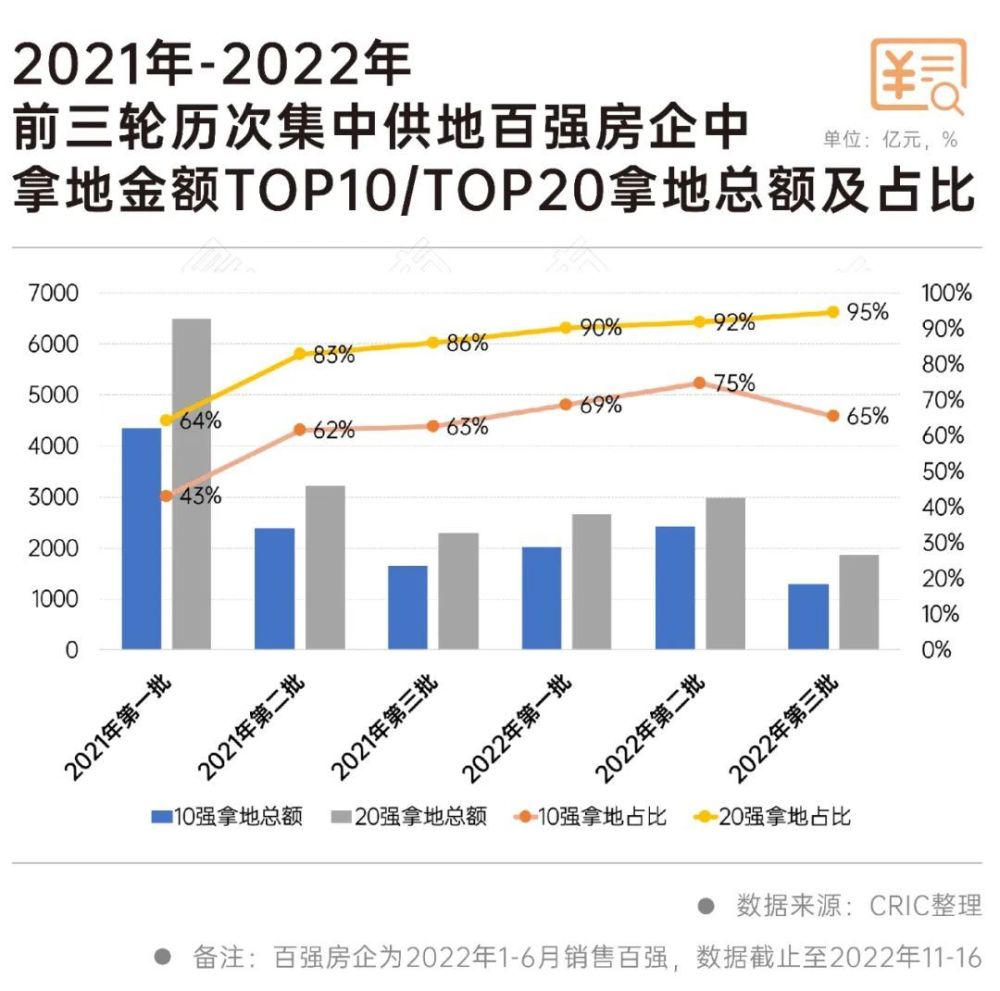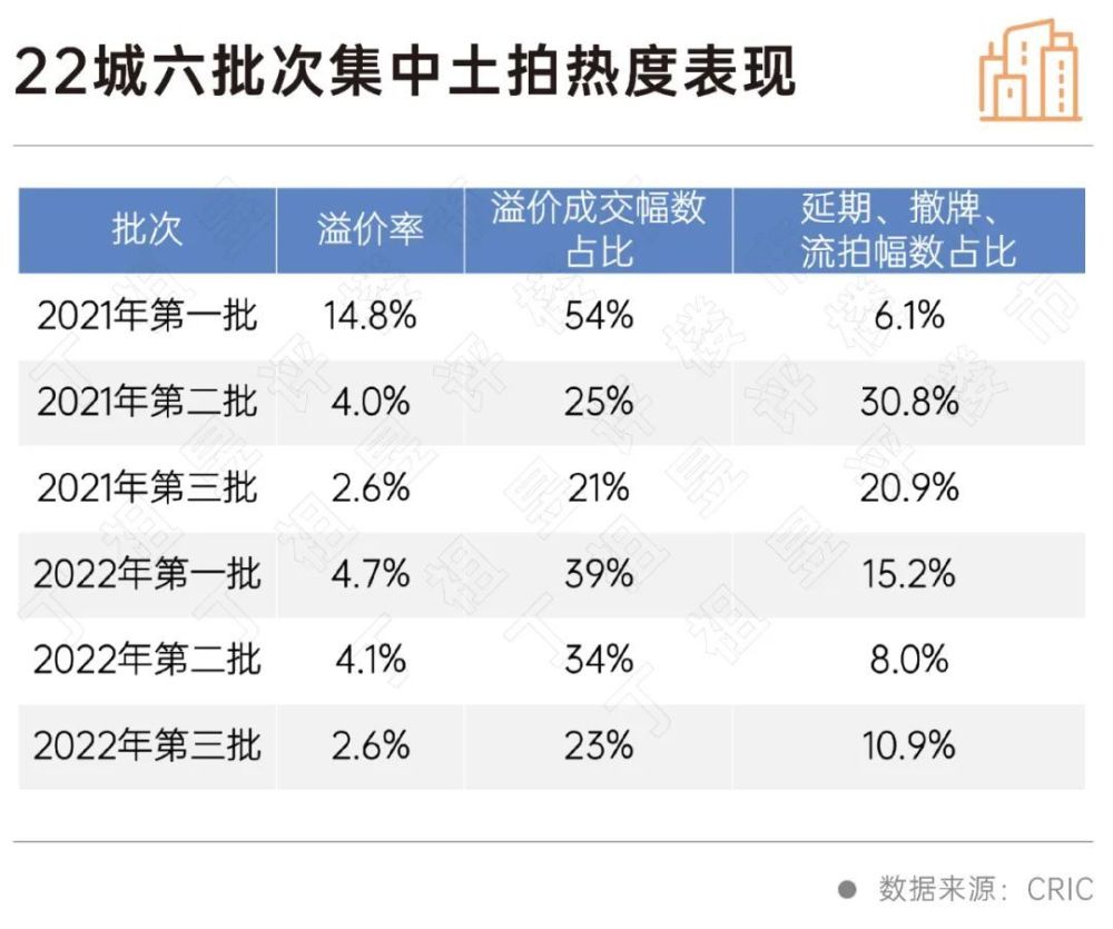 临近12月中旬,22个典型城市基本已完成了2022年第三轮集中供地。与以往不同的是,今年不少城市都进行了4-6轮供地,这一变化也让集中供地的界限越来越模糊。 与2021年相比,土地市场仍深陷调整期,热度一路下滑。2022年集中供地整体呈现四大特点: 1,成交规模逐轮递减,供地计划的完成率偏低; 2,土拍政策一路宽松,但效果毫无起色; 3,城投依然“托底”,除城投、央国企以外的企业,今年投资基本暂停; 4,城市分化进一步加剧。 集中供地初衷为了抑制土地市场过热,到今天不断放松政策刺激土地市场热度,随着经济、行业、企业的背景和发展逻辑发生转变,未来供地会逐步淡化“集中式”,无论是从成交量还是市场热度来看,集中供地的城市名单或将调整。 ![]() ![]() 自2021年下半年以来,房地产市场热度一直走低,多家规模房企遭遇流动性危机,楼市成交规模持续下行。尤其是2022年,市场仍在“筑底”,土拍热度并未出现预期的“回暖”。 此背景下,土拍规则也在这两年间也经历了过山车式的调整,呈现“松—紧—分化—更松”的变动趋势。各地土拍门槛相继放低,加大中心城区土地供应、降资质、降地价、提限价等措施纷纷出台,但整体效果并不显著。 CRIC数据显示,22个重点城市2022年前三轮集中供地中,中心城区的供地比重均在48%以上,比2021年三轮中心城区供地比重高出5-8个百分点不等。 ![]() 第三批次集中供地更为明显,更多城市采取了“少而优”的土地供应方式,半数以上重点城市中心城区供地比重超过五成。 典型如杭州,第三轮推出的19宗涉宅地有15宗位于主城区,中心城区供地比重高达79%,包括钱江新城二期、艮北、申花、西兴等热门地块,最终19宗地块中有8宗触及上限价格进入一次报价阶段,触顶率达42.1%,超过了首轮的38.3%、二轮的26.7%。 此外,合肥、宁波、苏州等城市中心城区供地比重也处于高位,多在65%以上,比前5轮集中供地中心城区供地比重明显提升。 ![]() 2022年第三季度以来为了减少流拍,促进土地成交,多个城市在土地供应端释放利好,包括降低拍地资质、减少土拍保证金比例、延缓土地价款缴纳期限、降低配建要求等减少房企拿地压力。比如成本方面,最直接的就是竞买保证金比重逐渐下降,典型如苏州,竞买保证金比例由去年二轮的30%-50%降至去年三轮的30%再降至今年的20%,对房企的资金要求明显放松,保证金比例一再下调。 事实上,经历了多轮土拍规则的调整,许多城市土拍规则已经松无可松,降资质、降成本、増利润空间等已经成为常态。 尽管土拍门槛明显下调、盈利空间增加的情况下,房企拿地积极性并未充分调动。 重点城市2022年第三轮集中供地整体溢价率仅有2.5%,较2022年第一、二轮溢价率明显下调,而对比2021年首轮14.8%的高溢价更存在较大差距。以广州为例,2022年第三轮土拍整体溢价率仅0.5%,较第二轮下降近6个百分点,且仅有2宗地块溢价成交,流拍率高达25%。 ![]() 2022年整体土地成交规模显著下降,多数城市供地计划完成率偏低,截止11月15日,已完成三轮土拍的城市总成交规模为3460万平方米,总成交规模也多不及前两轮。 截止11月中旬,已完成第三轮集中土拍的18个城市,合计成交建面约3460万平方米,即使考虑还未开拍的郑州、长春、重庆和沈阳,22城第三轮集中成交体量预计仍不足4000万平方米。成交幅数也降至新低,18城共成交326幅地,即使郑州、重庆、长春及沈阳等出让地块全部成交,也难以追平上一轮。 ![]() 在加大中心城区土地供应结构的背景下,大部分城市22年第三批次土地集中成交规模较上一轮出现收缩,诸如南京、杭州、无锡、宁波等城市第三轮成交规模较上一轮降幅都在四成以上。 在土地成交规模明显缩减的影响下,大部分城市2022年供地计划完成率明显偏低。 具体联系各城市的2022年供地计划来看,三轮供地结束后,仅上海成交规模占全年住宅用地计划供应量的比例刚刚达到八成,多数城市的供地计划完成率不及六成,包括北京、深圳等土地市场相对较热的城市也是如此。典型如武汉,前三轮成交土地规模占全年计划供应量的比例仅在四分之一左右。 ![]() 各城市热度分化,已完成前三轮集中供地的18个城市成交地块的平均溢价率仅2.6%,较第二批次下降了1.5个百分点,降至集中供地以来的最低。 18个完成第三轮集中土拍的城市中,溢价率超过5%的城市仅有宁波、合肥、北京和杭州四个城市,而有9个城市的平均溢价率不足1%,其中无锡、长沙和济南第三轮集中成交地块则均是以底价成交,土地市场热度降至谷底。 具体按照溢价率水平来划分,这些城市大致可以分为四类: (1)延续高位型,即每轮溢价都在5%以上的城市,包括合肥、杭州两个城市; (2)回温型,包括北京、宁波两个城市,第三轮集中成交的溢价率水平均回升至5%以上,且达到了三轮最高; (3)降温型,包括了多数城市,比如深圳、上海、广州、成都等二轮热度较高的城市; (4)持续低温型,三轮集中成交溢价率均为超过2%的城市,包括青岛、天津、武汉、无锡、长沙和济南等城市。 此外,延期、撤牌、流拍的土地占仍较上一轮明显上升,比重由第二轮的8.0%上涨至10.9%。第三轮集中成交的346宗住宅用地中,仅75幅以溢价成交,占比还不足四分之一,换而言之,超过七成地块均是底价成交。 ![]() 在一系列调整下,京、沪部分郊区地块盈利可观。在市场热度持续降温下,为了吸引房企参拍,部分