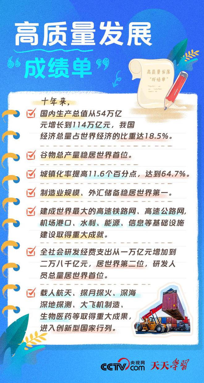 (原标题:二十大报告学习笔记丨高质量发展篇) 编者按:党的二十大报告深刻阐述了开辟马克思主义中国化时代化新境界、中国式现代化的中国特色和本质要求等重大问题,擘画了全面建成社会主义现代化强国的宏伟蓝图和实践路径。如何深入学习领会党的二十大报告的思想精髓与核心要义?央视网《天天学习》推出“二十大报告学习笔记”系列互动海报,为您“沉浸式”解读党的二十大报告关键词。 天天学习 党的二十大报告指出,高质量发展是全面建设社会主义现代化国家的首要任务。发展是党执政兴国的第一要务。没有坚实的物质技术基础,就不可能全面建成社会主义现代化强国。必须完整、准确、全面贯彻新发展理念,坚持社会主义市场经济改革方向,坚持高水平对外开放,加快构建以国内大循环为主体、国内国际双循环相互促进的新发展格局。 党的十八大以来,以习近平同志为核心的党中央提出并贯彻新发展理念,着力推进高质量发展,推动构建新发展格局,实施供给侧结构性改革,制定实施了一系列具有全局性意义的区域重大战略,我国经济实力实现历史性跃升。 ![]() ![]() ![]() ![]() ![]() ![]() ![]() ![]() |