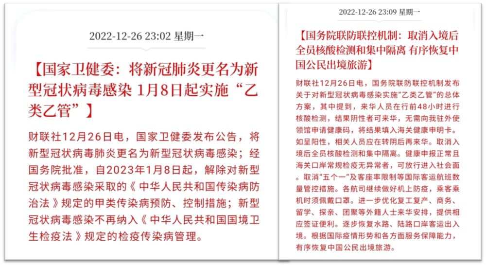 ![]() 本文来自微信公众号:国民经略 (ID:guominjinglve),作者:凯风,头图来自:视觉中国 大疫三年突然之间,一切都来了。12月26日,国家卫健委官方发布通告,将新型冠状病毒肺炎更名为新型冠状病毒感染,对新型冠状病毒感染实施“乙类乙管”,取消入境后全员核酸检测和集中隔离,有序恢复中国公民出境旅游。 ![]() 这意味着,影响了全民三年之久的“新冠肺炎”,终于退出历史舞台,而跨境自由流动终于再次落地,一个时代真的要结束了。这个时间点,最终被控制在2022年,似乎再次印证了“大疫不过三”的传说。从2019年底首次发现新冠感染者以来,到2022年底新冠肺炎更名并降级管理,过去了整整三年。这三年,人们经历了无数悲欢离合,既见证了令人动容的英雄故事,也看到了某些闹剧的上演,体会了人性的温暖与复杂。这三年,人们见识了一系列新名词的诞生。从绿码、黄码、红码到灰码、蓝码,从封城到静态管理再到静默管理,从硬核隔离到劝返再到恶意返乡……名词背后是许多人的人生。曾几何时,“青春才几年,疫情占三年”的说法不胫而走,许多人一度悲观地认为,新冠以及与之相关的隔离管控,可能要如影随形伴随整个青春。谁也没想到,2022年最后一个月,整个政策完成了惊天动地的大调整。前一个月还在全面封控,一度上亿人陷入静默管控;后一个月连“新冠肺炎”这一名称都不复存在,全民核酸、健康码、场所码更是迅速退出历史舞台。然而,虽然新冠肺炎在名义上正式“收官”,但不意味着新冠感染到了终结之时:大多数地方正在面临疫情流行高峰的冲击,即使再低的重症率,都会带来相当大规模的风险。“新冠肺炎”或许不再存在,但疫情大流行仍未结束,防疫同样没有终结。“乙类乙管”,意味着什么?时隔1084天,新冠终于回归“乙类乙管”。回到三年前,2020年1月,国家卫健委发布1号公告,将新型冠状病毒感染的肺炎纳入法定传染病乙类管理,采取甲类传染病的预防、控制措施。 ![]() 这是新冠“乙类甲管”的由来,也是静默管理、集中隔离、健康码、场所码等做法的主要依据所在。根据传染性及危害程度,我国将法定传染病分为甲类、乙类、丙类三类,其中甲类传播速度最快、危害最为严重、管控最为严厉。 ![]() 目前,我国只有鼠疫、霍乱2个传染性位列甲类,新冠肺炎从一开始就位列“乙类”,不过一度升格为“甲类管理”。事实上,无论是这一次的新冠,还是20年前的非典,抑或引发广泛关注的H7N9禽流感,或者艾滋病等,都属于乙类范畴。对于甲类传染病,指的是发病率高,治疗延误时引起病死率高,传播速度快,波及面广,可能危及社会安全,需采取强制性隔离、疫区封锁或者交通卫生检疫等措施的烈性传染病。可见,甲类管理,与强制性隔离、疫区封锁、交通卫生检疫等相伴而生,这也是这几年流行的集中隔离、静默管理、严控出入境等做法的由来。回归“乙类乙管”,则意味着防控的重点,从以“防感染”为主的隔离管控,转向了防重症、防死亡,而高效疫苗、分级诊疗、重症防护成了关键。当然,在文件发布之前,无论是全民核酸还是静默管控都已不复存在,随着疫情大流行高峰的到来,整个社会的防控重点早已发生了变化。“新冠肺炎”不复存在,疫情仍未终结“新冠肺炎”不复存在,但疫情并未彻底终结。目前,北京、石家庄、成都、武汉、广州等地陆续渡过了第一轮高峰,而上海、深圳、杭州、苏州、南京等地正在直面新冠大流行的冲击。这从各地的地铁客流量走势可见一斑,可参考《沪深杭硬抗,北京广州成都开始“复活”了》一文。 ![]() 由于国家层面不再公布每日新冠感染数据,全民核酸也不复存在,依靠自觉的抗原难以发挥作用,目前到底有多少人感染,不得而知。不过,从疫情搜索指数及各大研究机构的数据模型来看,部分城市已经达峰,而大多数地区将在2023年1月上旬达到感染高峰,2023年3月上旬转入低水平流行。 ![]() 在这方面,一些省市罕见公布了感染数据。12月25日,浙江省疫情防控发布会透露,目前浙江日新增报告阳性人员数已突破100万例,预计在在元旦前后进入高位平台期,期间日新增阳性人员最高将达200万,高峰期预计维持一周左右。 ![]() 无独有偶,此前青岛和东莞公布的日感染数据分别是49万~53万人、25万~30万人,且随着逼近高峰,增速越来越快。浙江是总人口多达6540万的人口大省,青岛、东莞都是千万人口大市,每天动辄数十万、上百万的感染数据,对于医疗系统带来的冲击可想而知。虽然官方表示,奥密克戎无症状感染者和轻型病例占比超过90%,重症率和病亡率极低,但再小的基数,放在每天数百万的感染高峰面前,都会带来超乎预期的影响。如何迈过新冠高峰,尤其是保障重症患者的医疗需求,无疑是一个巨大的考验。开弓没有回头箭我们何时才能重回2019年?政策放开之后的第一个月,感染高峰的迅速到来,地铁、商场人流肉眼可见的减少,重症及死亡病例的出现,让许多人有了回归隔离管控的想法。更有不少人悲观地表示,放开以来,整个经济和消费并未出现立竿见影的大反弹,反而陷入“停摆”,更让部分人产生对政策调整必要性的质疑。然而,任何事情都不能只看到一时,更不能因为问题的出现而否定调整的必要性及迫切性。且不说面对经济、财政以及疫情本身的演化,一旦选择解封,就没有任何回头路可走,世界所有国家都是如此。而从国