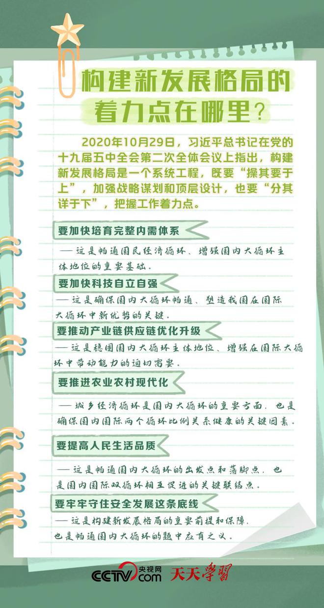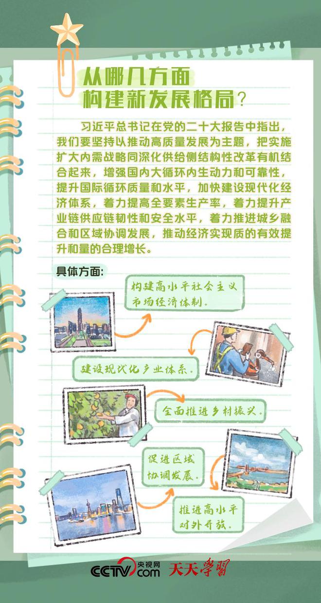(原标题:二十大报告学习笔记丨构建新发展格局) 编者按:党的二十大报告深刻阐述了开辟马克思主义中国化时代化新境界、中国式现代化的中国特色和本质要求等重大问题,擘画了全面建成社会主义现代化强国的宏伟蓝图和实践路径。如何深入学习领会党的二十大报告的思想精髓与核心要义?央视网《天天学习》推出“二十大报告学习笔记”系列互动海报,带您“沉浸式”解读党的二十大报告关键词。 天天学习 构建以国内大循环为主体、国内国际双循环相互促进的新发展格局,是根据我国发展阶段、环境、条件变化,特别是基于我国比较优势变化,审时度势作出的重大决策。构建新发展格局是事关全局的系统性、深层次变革,是立足当前、着眼长远的战略谋划。 习近平总书记在党的二十大报告中指出,必须完整、准确、全面贯彻新发展理念,坚持社会主义市场经济改革方向,坚持高水平对外开放,加快构建以国内大循环为主体、国内国际双循环相互促进的新发展格局。 在1月31日中共中央政治局就加快构建新发展格局进行第二次集体学习时,习近平总书记特别强调,只有加快构建新发展格局,才能夯实我国经济发展的根基、增强发展的安全性稳定性,才能在各种可以预见和难以预见的狂风暴雨、惊涛骇浪中增强我国的生存力、竞争力、发展力、持续力,确保中华民族伟大复兴进程不被迟滞甚至中断,胜利实现全面建成社会主义现代化强国目标。 ![]() ![]() ![]() ![]() ![]() ![]() |