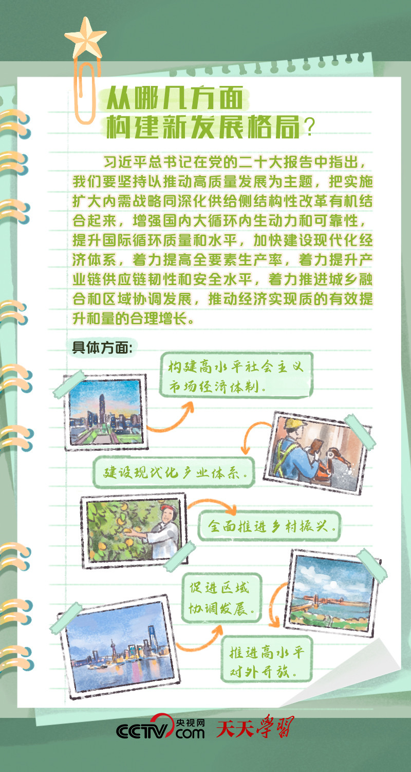 编者按:党的二十大报告深刻阐述了开辟马克思主义中国化时代化新境界、中国式现代化的中国特色和本质要求等重大问题,擘画了全面建成社会主义现代化强国的宏伟蓝图和实践路径。如何深入学习领会党的二十大报告的思想精髓与核心要义?央视网《天天学习》推出“二十大报告学习笔记”系列互动海报,带您“沉浸式”解读党的二十大报告关键词。 天天学习 构建以国内大循环为主体、国内国际双循环相互促进的新发展格局,是根据我国发展阶段、环境、条件变化,特别是基于我国比较优势变化,审时度势作出的重大决策。构建新发展格局是事关全局的系统性、深层次变革,是立足当前、着眼长远的战略谋划。 习近平总书记在党的二十大报告中指出,必须完整、准确、全面贯彻新发展理念,坚持社会主义市场经济改革方向,坚持高水平对外开放,加快构建以国内大循环为主体、国内国际双循环相互促进的新发展格局。 在1月31日中共中央政治局就加快构建新发展格局进行第二次集体学习时,习近平总书记特别强调,只有加快构建新发展格局,才能夯实我国经济发展的根基、增强发展的安全性稳定性,才能在各种可以预见和难以预见的狂风暴雨、惊涛骇浪中增强我国的生存力、竞争力、发展力、持续力,确保中华民族伟大复兴进程不被迟滞甚至中断,胜利实现全面建成社会主义现代化强国目标。 ![]() ![]() ![]() ![]() ![]() ![]() |