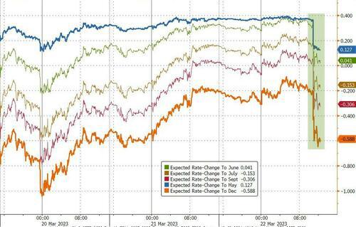 在隔夜美联储决议后,利率市场对 2023 年下半年的利率预期大幅下降,对年底的降息幅度押注升至了约 58 个基点 ……