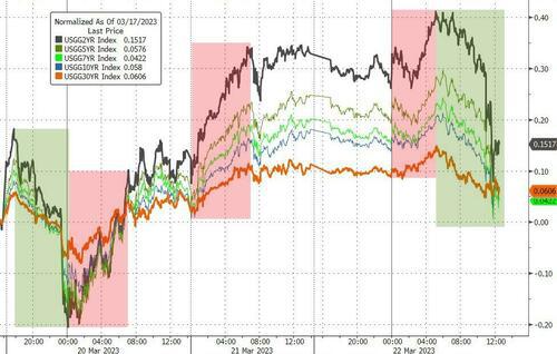 事实上,以行情的结果论来看,如果你并非是一位股市投资者,而是位债市或汇市的交易员,你可能并不会认为昨夜的美联储利率决议是倾向于鹰派的。下面几张图表能够清晰地证明这一点: