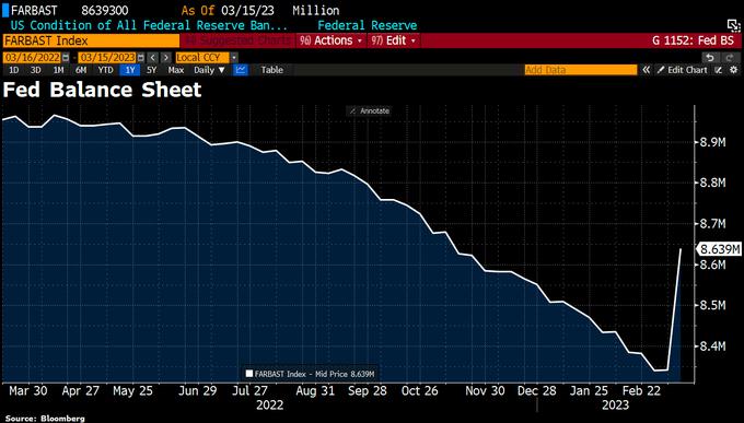 美联储资产负债表规模在截止上周四的短短一周内激增了近 3000 亿美元。关于市场担忧的美联储在美国区域性银行危机后是否会停止缩表而造成政策扭曲,鲍威尔隔夜明确表示," 我们正在继续大幅缩减资产负债表。"