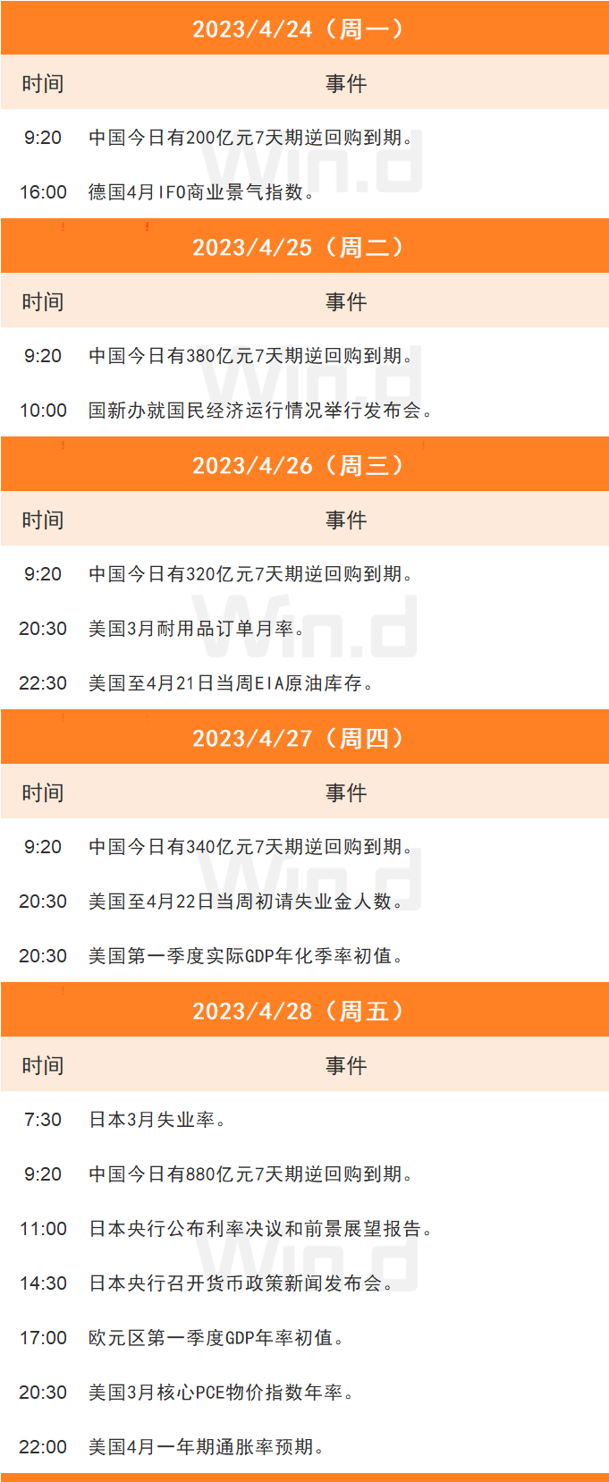 // 国内投资要闻 // 1、 4月LPR报价不变,为连续第8个月持稳。1年期LPR报3.65%,上次为3.65%;5年期以上品种报4.3%,上次为4.30%。央行4月17日开展1700亿元1年期MLF操作和200亿元7天期公开市场逆回购操作,中标利率分别为2.75%、2.0%。由于作为LPR报价锚定利率的MLF利率保持不变,市场此前普遍预计4月LPR继续不变。 2、 净值回撤影响逐步消退,银行理财市场一季度企稳回升。经济参考报报道,在经历“赎回潮”“破净潮”之后,银行理财市场迎来企稳回升态势。数据显示,一季度全市场共新发了7197款理财产品,环比增加742款。一季度理财公司产品平均期间年化收益率为5.24%,环比上涨783个基点。与此同时,银行理财产品“破净”(指累计单位净值跌至1元以下)范围也持续缩小。 3、 部分公募资金兑现收益,从人工智能回归消费。人工智能主线品种在短时间实现涨幅翻倍后,为基金经理“从高往低”的调仓提供了好时机。证券时报记者注意到,前期一些看好人工智能的基金经理最近开始频频调研新消费,2023年糖酒会更是吸引了不少现场调研,部分基金经理强调4月份的消费股年报和一季报或触发A股市场风格转换。 // 国际投资要闻 // 1、 美联储5月加息25个基点的概率为83.9%。据CME“美联储观察”,美联储5月维持利率不变的概率为16.1%,加息25个基点的概率为83.9%;到6月维持利率在当前水平的概率为10.4%,累计加息25个基点的概率为59.9%,累计加息50个基点的概率为29.7%。 // 本周市场 // 01本周主要股指涨跌幅 周五(4月21日),上证指数单边下滑收跌1.95%,创年内最差表现,万得双创跌超3%。TMT行业全线下挫,申万计算机、电子、传媒行业均创年内最大跌幅,金融、消费、周期股均持续萎靡;军工、抗疫概念逆势造好。 Wind数据显示,北向资金午后单边离场,全天大幅净卖出76.19亿元,单日净卖出额创年内新高;本周累计净买入逾3亿元。 ![]() 数据来源:万得投顾终端 注:统计区间2023/04/17-2023/04/21 02本周基金市场回顾 本周全市场发行基金一共17只(同一基金不同份额只展示一只),具体来看,混合型基金4只、股票型基金3只、债券型基金7只、QDII基金2只,FOF基金1只。 ![]() 数据来源:万得投顾终端 注:统计区间2023/04/17-2023/04/21 03本周基金指数收益速览 一周以来,平衡混合型基金指数、FOF型基金指数、灵活配置型基金指数分别为:0.41%、0.28%、0.09%。 另类投资基金指数、可转债基金指数、QDII基金指数表现不佳,收益率分别为:-0.6%、-0.38%、-0.37% 。 ![]() 数据来源:万得投顾终端 注:统计区间2023/04/17-2023/04/21 04热门基金 ![]() 数据来源:万得投顾终端 注:统计区间2023/04/17-2023/04/21 05银行理财市场回顾 截至4月21日,本周净值型银行理财产品新发597只,成立618只,成立规模179.0401亿元,成立规模较上周减少61.7%。 ![]() 产品类型情况 ![]() 发行机构情况 ![]() 数据来源:万得投顾终端 注:统计区间2023/04/17-2023/04/21 // 下周财经日历 // ![]() |