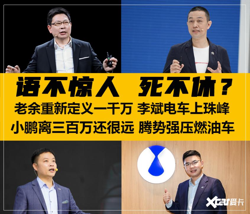 4 月 18 日,2023 上海车展拉开帷幕,本届上海车展也是近三年来国内举办的最重要的国际车展。本届车展中有国内外 1000 多家企业参展,百余款新车全球首发,这也就让本届车展的展览面积、参展车型、全球首发车型都创下新纪录。而除了新车、新技术、新战略之外,有不少车企老总爆出了让人印象深刻的 " 金句 "。