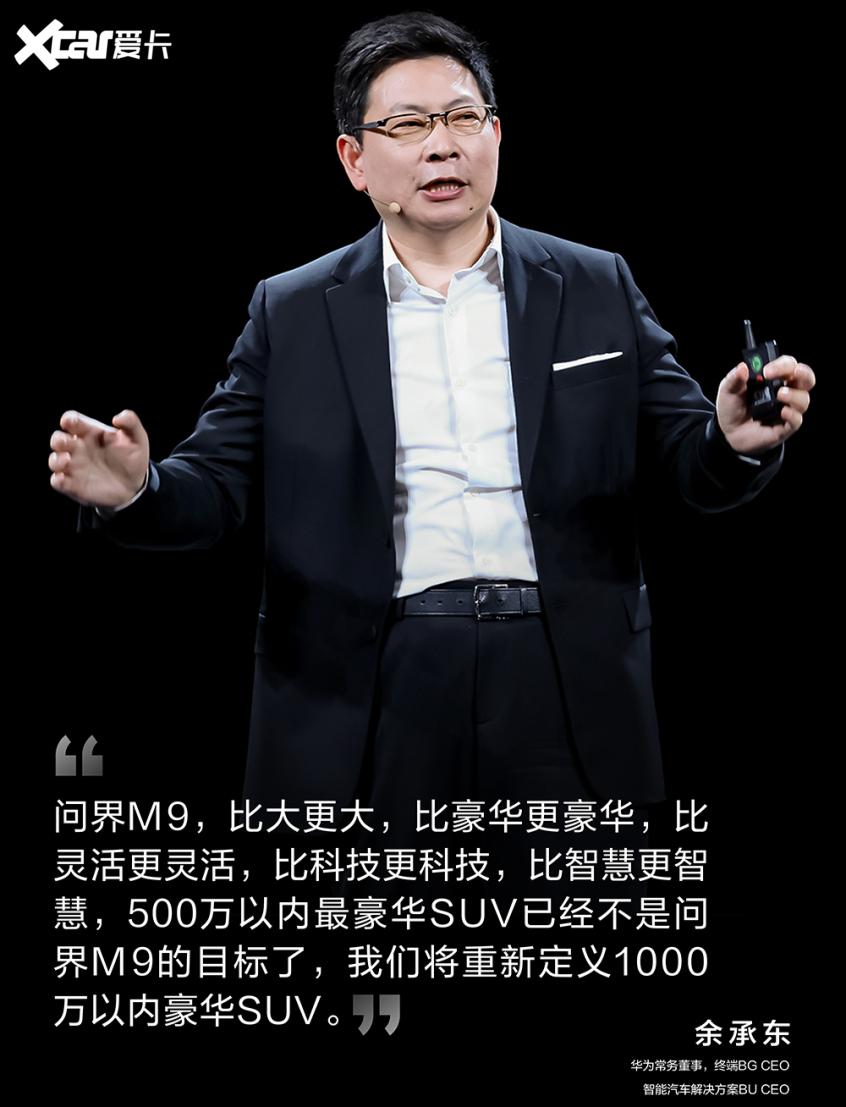 余承东:M9 是 1000 万内最好的 SUV" 遥遥领先 " 已经成为了余承东的发布会标签之一。华为 2023 智能汽车解决方案新品发布会上,余承东在介绍新技术时再次用起了这个词:和新势力、特斯拉相比,我们遥遥领先。