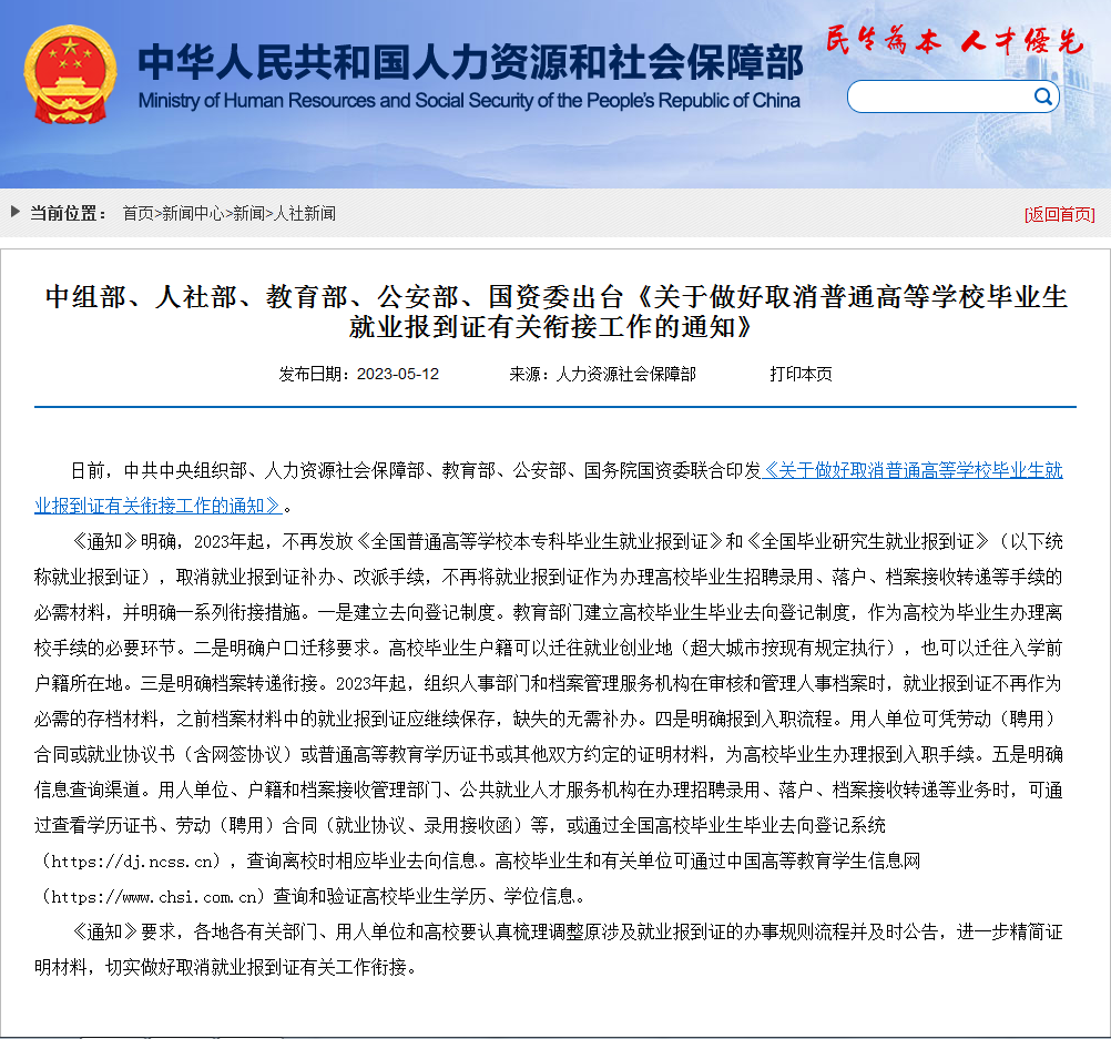 ![]() 档案转递衔接方面,《通知》明确,2023年起,组织人事部门和档案管理服务机构在审核和管理人事档案时,就业报到证不再作为必需的存档材料,之前档案材料中的就业报到证应继续保存,缺失的无需补办。报到入职流程上,用人单位可凭劳动(聘用)合同或就业协议书(含网签协议)或普通高等教育学历证书或其他双方约定的证明材料,为高校毕业生办理报到入职手续。 《通知》还要求,各地各有关部门、用人单位和高校要认真梳理调整原涉及就业报到证的办事规则流程并及时公告,进一步精简证明材料,切实做好取消就业报到证有关工作衔接。 来源:人民日报客户端,记者:邱超奕本期编辑:胡程远、方梓祎 |