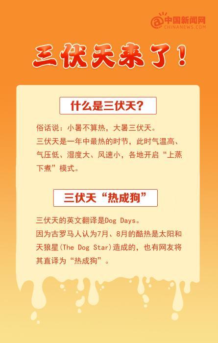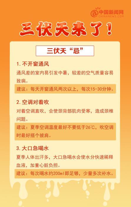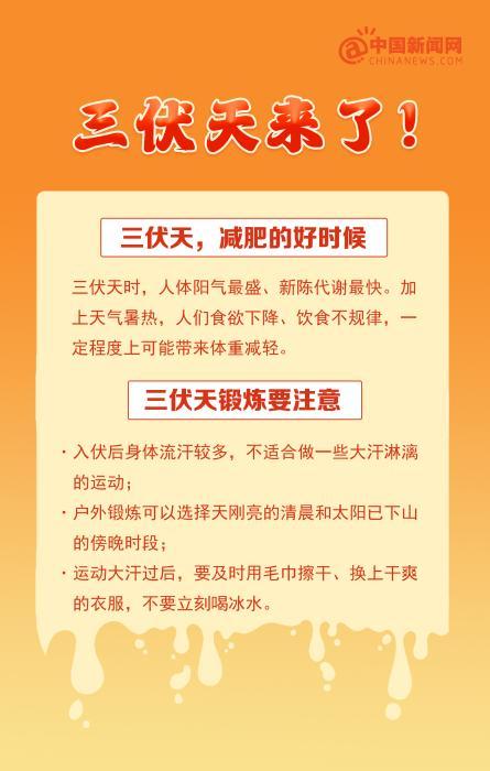 你知道吗?三伏天时,人体阳气最盛、新陈代谢最快,是减肥的好时候;三伏天的英文翻译是 Dog Days;三伏天不宜空调对着吹,不宜过度喝冷饮……大家注意防暑降温! ![]() ![]() ![]() ![]() ![]() ![]() ![]() ![]() ![]() 制图 中新网 张小雨 为啥三伏天减肥最管用? ![]() 3. 排毒出汗:高温使得我们通过大量出汗来排除多余的热量和毒素。虽然暂时会让体重轻一些,但主要还是由于水分流失造成的。 |