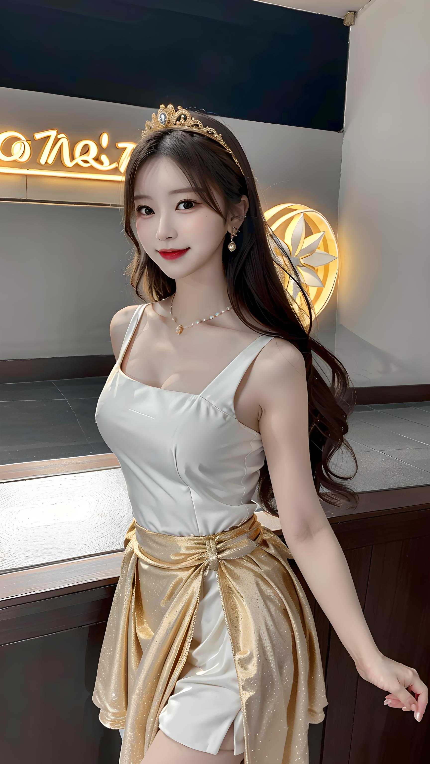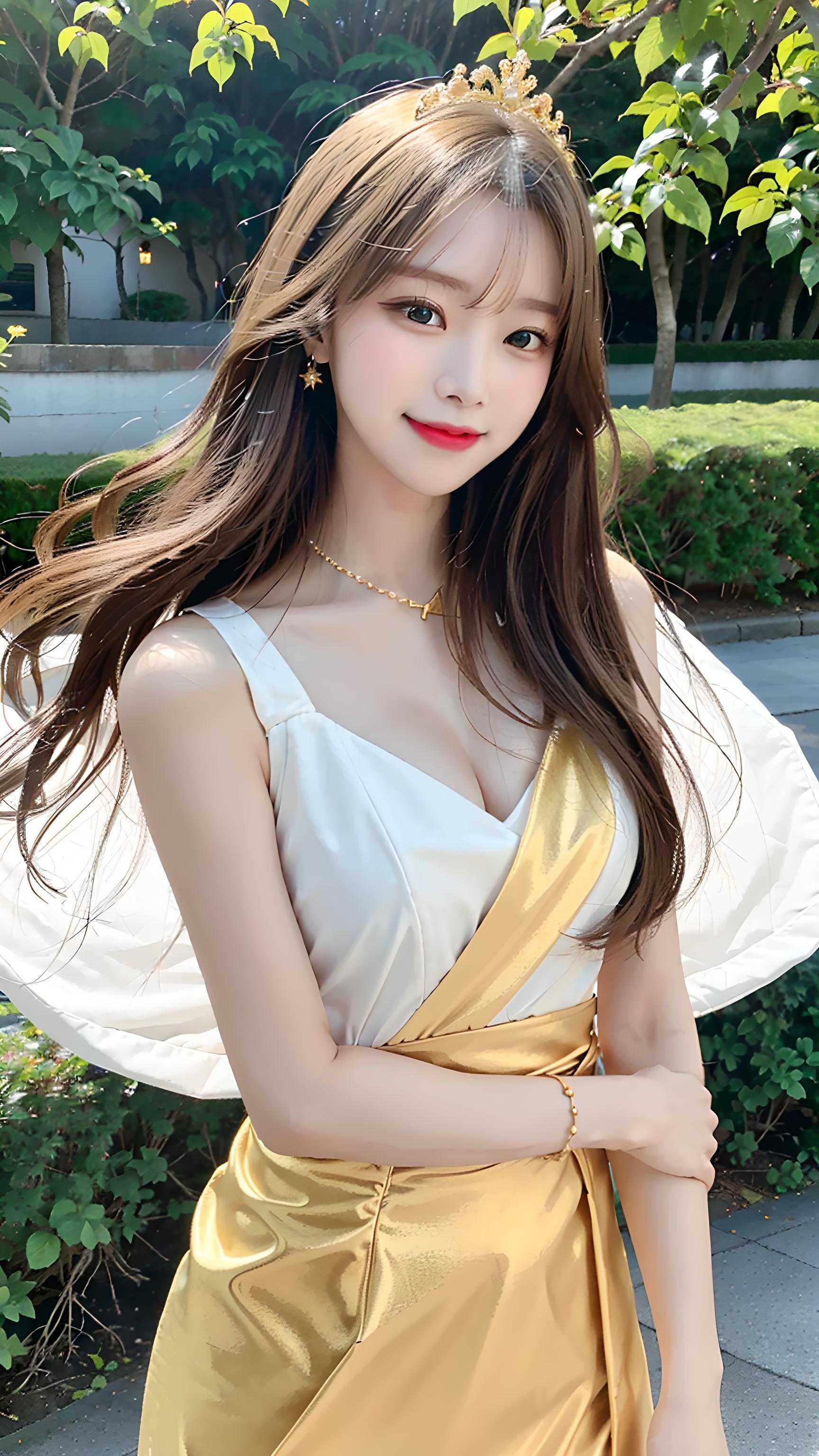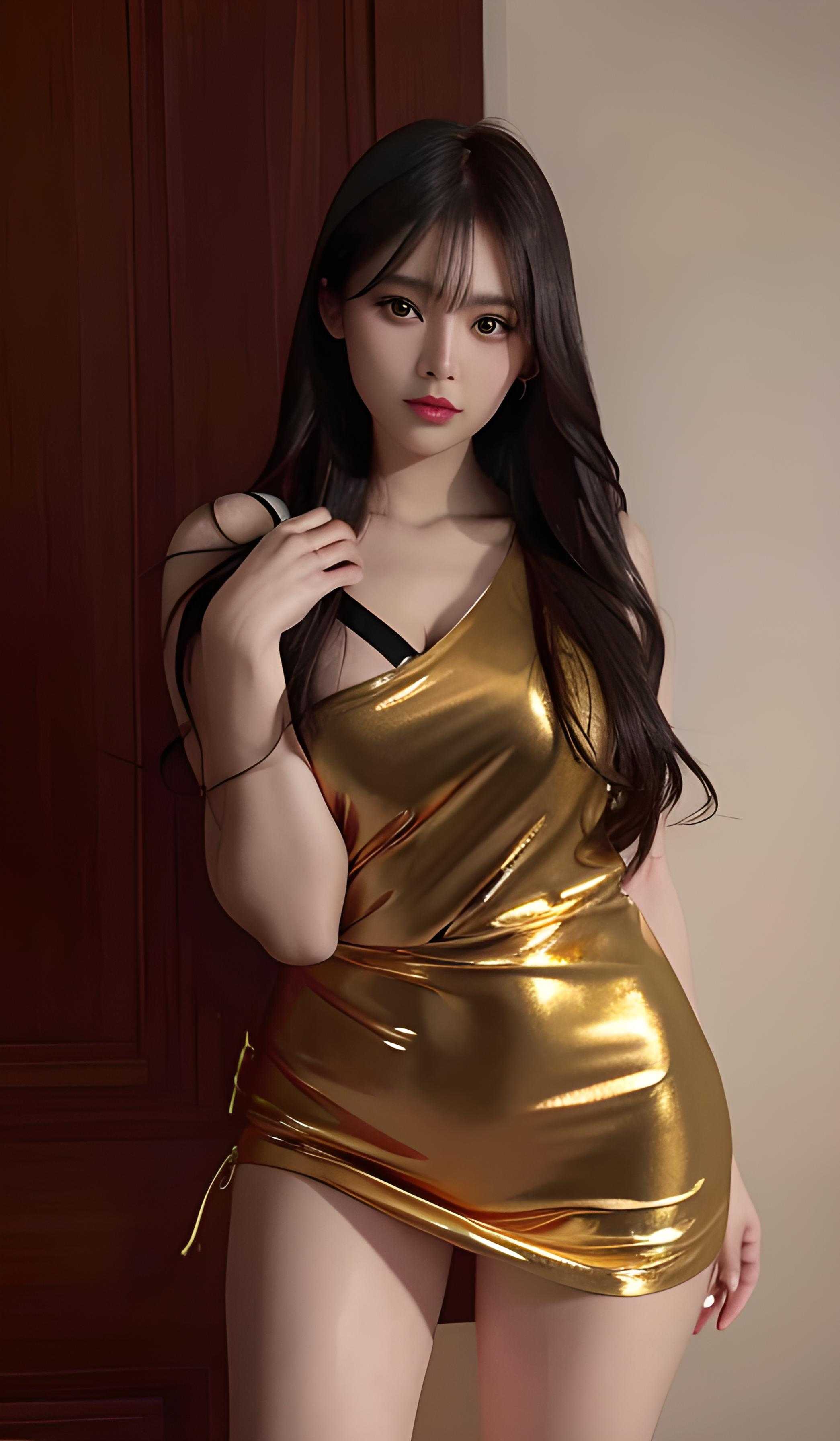 雅典娜的相貌可以说是完美无缺。大眼睛双眼皮五官精致妩媚动人,披肩发,她的眼睛深邃而明亮,如同繁星点缀的夜空,能够洞察世间的一切奥秘。她的鼻梁挺直,双唇红润,说话间流露出优雅与自信。她的长发如同金色的瀑布,随风舞动,闪烁着阳光般的光芒。她的肌肤细腻而白皙,仿佛洁白的珍珠一般,散发出自然的光芒。 雅典娜的身材婀娜多姿,恰到好处。头戴金色皇冠,身穿金色吊带连衣裙,长度刚过大腿根,雪白圆润紧致饱满的双腿,她的曲线优美,身材匀称而协调。她的肩膀宽阔而平直,凸显出她的自信和果敢。她的腰部纤细,臀部丰满,让人不禁为之倾倒。她的身体充满了女性的韵味,同时又有着一股强大的力量,彰显出她的坚韧和勇气。 雅典娜的衣服是精心设计和制作的。她穿着一件华丽的金色圣衣,这件衣服是由最优质的金色绸缎制成的,上面镶嵌着闪耀的宝石和精致的刺绣。衣服的肩部有着宽大的金色披风,让她看起来更加威严。她的裙子蓬松而华丽,裙摆在风中舞动,仿佛金色的火焰。在她的腰间,还束有一条金色的腰带,上面镶嵌着一颗璀璨的宝石,象征着她的智慧和力量。 雅典娜的面部笑容总是那么温暖而迷人。她的笑容像春天的阳光,让人感到希望和温暖。当她笑起来时,她的眼睛闪烁着智慧的光芒,仿佛有一种神秘的力量在吸引着人们。她的笑容是如此美丽,仿佛能够驱散一切阴霾,让人们在她的光辉下感受到生命的美好与力量。 |