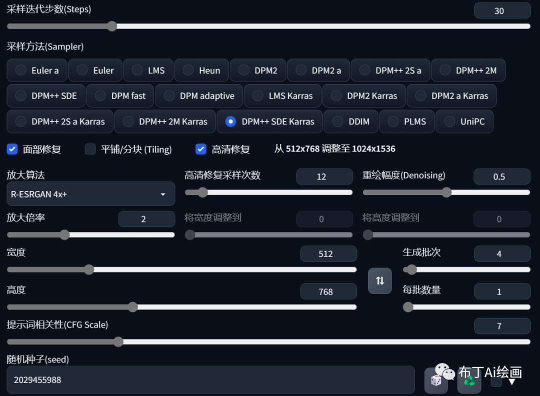 ![]() ![]() ![]() ![]() ![]() 以下是Prompt提示词正向提示词:(8k,RAW photo, best quality, masterpiece:1.2), (realistic, photo-realistic:1.37),ultra high res, photon mapping, radiosity, physically-based rendering, 1girl,(black hair:1.3),detailed face,detailed eyes,big breasts, shiny skin,hip,(pureerosface_v1:1.0),standing,(school uniform:1.5), looking at viewer,(laughing out lovely:1.2),(happy),cure lovely, (cityscape:1.2), (night:1.2),(dark theme:1.5), <lora:koreanDollLikeness_v15:0.6>反向提示词:(badhandv4), verybadimagenegative_v1.3, EasyNegative, ng_deepnegative_v1_75t, verybadimagenegative_v1.3,sketches, (worst quality:2), (low quality:2), (normal quality:2), lowres, normal quality, ((monochrome)), ((grayscale)), skin spots, acnes, skin blemishes, bad anatomy, DeepNegative, facing away, tilted head, {Multiple people}, lowres, bad anatomy, bad hands, text, error, missing fingers, extra digit, fewer digits, cropped, worstquality, low quality, normal quality, jpegartifacts, signature, watermark, username, blurry, bad feet, cropped, poorly drawn hands, poorly drawn face, mutation, deformed, worst quality, low quality, normal quality, jpeg artifacts, signature, watermark, extra fingers, fewer digits, extra limbs, extra arms,extra legs, malformed limbs, fused fingers, too many fingers, long neck, cross-eyed, mutated hands, polar lowres, bad body, bad proportions, gross proportions, text,error, missing fingers, missing arms, missing legs, extra digit, extra arms, extra leg, extra foot, ((repeating hair)), (multiple heads),nsfw其它参数:Steps: 30, Sampler: DPM++ SDE Karras, CFG scale: 7, Seed: 2029455988, Size: 512x768, Model hash: fc2511737a, Model: chilloutmix_NiPrunedFp32Fix, Denoising strength: 0.5, Clip skip: 2, ENSD: 31337, Hires upscale: 2, Hires steps: 12, Hires upscaler: R-ESRGAN 4x+使用的大模型是:chilloutmix_NiPrunedFp32Fix.safetensorsVAE美化模型:自动需要安装包的可在公众号后台回复数字:1需要Lora模型可在公众号后台回复数字:2需要基础模型可在公众号后台回复数字:3需要VAE模型可在公众号后台回复数字:4参数界面如下: ![]() 喜欢AI绘画的小伙伴欢迎私信我呀,跟大家一起学习AI绘画技术。 之后还会出一些stable diffusion的教程,可以关注一下防走丢哦。 ![]() |