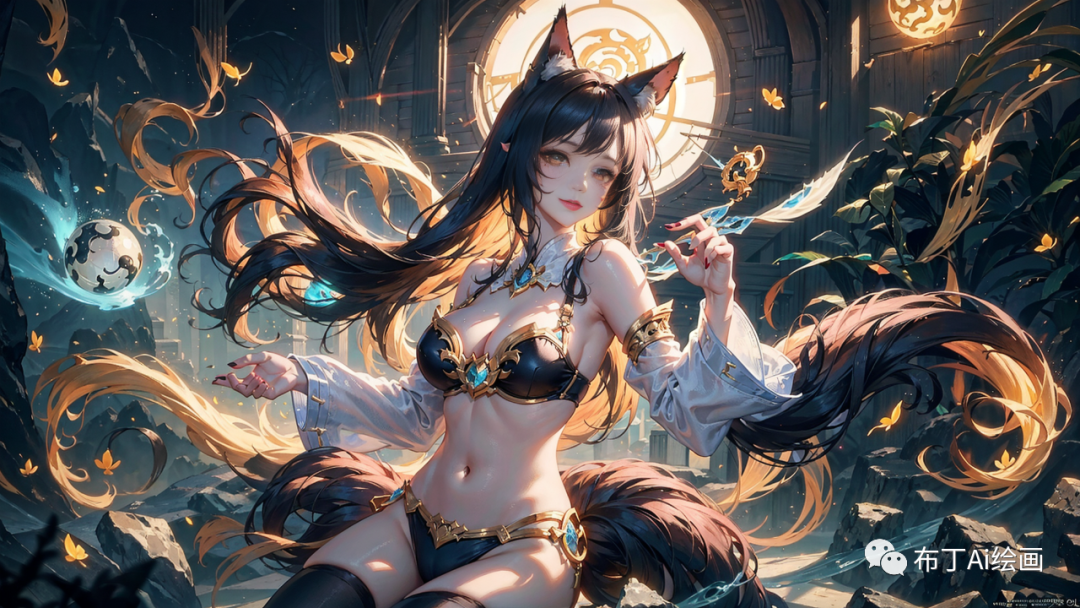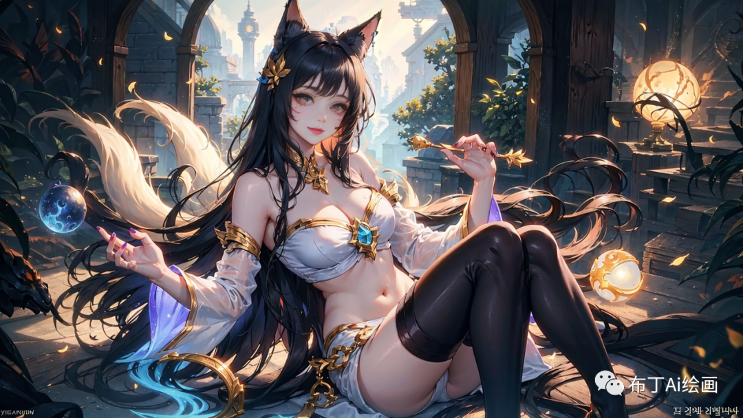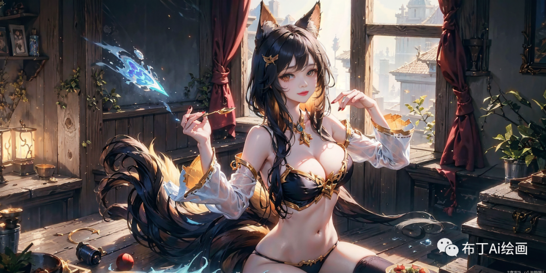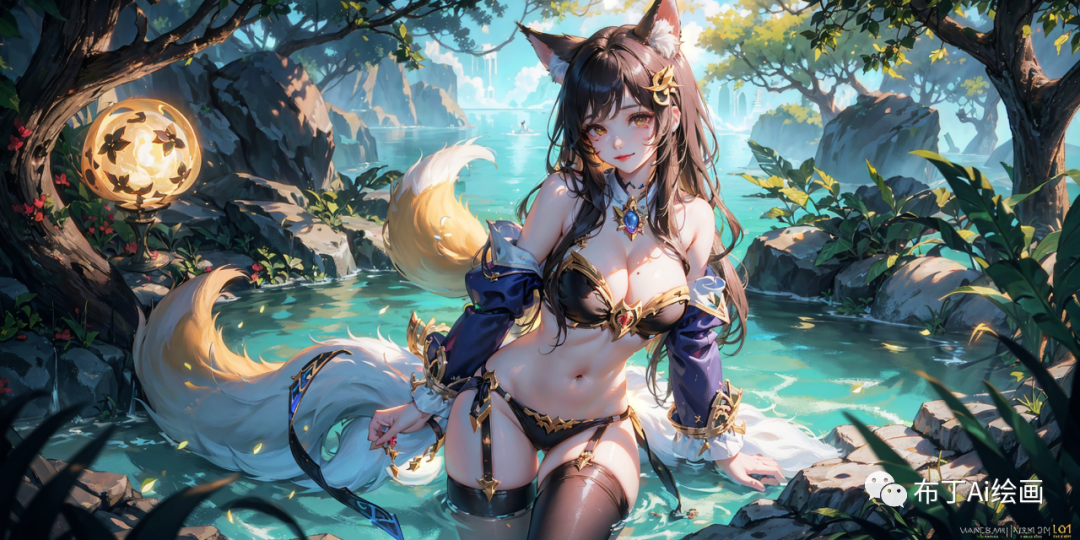 ![]() ![]() ![]() ![]() ![]() ![]() ![]() ![]() ![]() ![]() ![]() ![]() ![]() 以下是Prompt提示词正向提示词:(super-complex detail) , 4K Unity,(super-detailed CG:1.2), (8K: 1.2), octane rendering,(best lighting), (1girl:1.5),(solo),ahri (league of legends),fox girl, long hair,black hair,hair bow,bangs,yellow eyes, whisker markings,fox ears,(multiple tails:1.5), (white tail:1.2),lips,medium breasts,(shiny skin), red nails,detached sleeves,korean clothes,underwear, navel,black panties, cleavage,bare shoulders, black bra,bikini,black thighhighs, outdoors,energy ball, tree,leaf, water,(magic:1.2), looking at viewer, smile,Dynamic, floating, luminous, (League of Legends original painting:1.2), (wide-angle viewing angle: 1.2), pureerosface_v1 <lora:koreanDollLikeness_v15:0.5> <lora:howlsMovingCastleInterior_v3:0.2> style-rustmagic <lora:conceptSceneryScene_v20:0.2>(可以左右滑动查看提示词)反向提示词:paintings, sketches, (worst quality:2), (low quality:2), (normal quality:2), lowres, normal quality, badhandsv5-neg, EasyNegative, ng_deepnegative_v1_75t, style-rustmagic-neg,watermark,(可以左右滑动查看提示词)其它参数:Steps: 36, Sampler: DPM++ 2S a Karras, CFG scale: 7.5, Seed: 4154085033, Size: 1024x512, Model hash: a611cf9c19, Model: cetusMix_Version35, Denoising strength: 0.5, Clip skip: 2, ENSD: 31337,Hires upscale: 2, Hires steps: 12, Hires upscaler: R-ESRGAN 4x+ Anime6B(可以左右滑动查看提示词)使用的大模型是:cetusMix_Version35.safetensorsVAE美化模型:orangemix.vae.pt需要安装包的可在公众号后台回复数字:1需要Lora模型可在公众号后台回复数字:2需要基础模型可在公众号后台回复数字:3需要VAE模型可在公众号后台回复数字:4参数界面如下: ![]() 喜欢AI绘画的小伙伴欢迎私信我呀,跟大家一起学习AI绘画技术。 之后还会出一些stable diffusion的教程,可以关注一下防走丢哦。 |