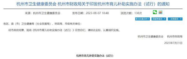 ![]() 一、补助类型和形式 分为孕产补助和育儿补助两类,采用一次性发放现金形式。 (一)孕产补助 1.补助对象:同一对夫妻自2023年1月1日起,怀孕(生产)二孩、三孩的杭州户籍孕(产)妇。 2.补助目的:减轻多孩家庭孕(产)妇孕期保健、生产及产后康复等医疗保健服务费用支出的负担。 3.补助标准:怀孕(生产)二孩给予一次性补助2000元,怀孕(生产)三孩给予一次性补助5000元。生产多胞胎的按其子女的孩次分别计算。 4.申请时限:孕(产)妇在怀孕后建有《母子健康手册》,且怀孕满24周至婴儿出生后180日(指自然日,下同)内提出申请,逾期未申请的视作自动放弃。 (二)育儿补助 1.补助对象:同一对夫妻自2023年1月1日起生育二孩、三孩的家庭,且新出生子女户籍登记在杭州。 2.补助目的:支持多孩家庭购买婴童产品及托育服务的费用支出,减轻养育负担。 3.补助标准:生育二孩给予一次性补助5000元,生育三孩给予一次性补助20000元。生育多胞胎的按其子女的孩次分别计算。 4.申请时限:在婴儿出生后180日内申请,逾期未申请的视作自动放弃。 二、资金保障 孕产补助和育儿补助经费由区、县(市)承担。其中育儿补助经费由市财政按不超过区、县(市)实际补助金额的20%进行补助。补助经费列入年度预算,确保按时到位。 三、补助实施流程 (一)提交申请 申请人通过手机“浙里办”APP--“健康杭州”--“善育在杭”--“孕产补助”、“育儿补助”,按提示发起补助申请,提交申请。 (二)资格审核 乡镇人民政府(街道办事处)进行初步审核,报经区、县(市)卫生健康局(社会发展局)终审确认补助资格。资格审核在收到申请后15个工作日内完成。 认证信息资料通过共享数据平台获取,申请人可通过系统查询审核进程,确认补助资格后通过系统向申请人发送审核结果。在审核过程中,如发现信息不全或存在疑问等情况,工作人员应及时与申请人取得联系,告知其应补齐证明材料或核实有关情况。 孕产补助认证信息资料包括:夫妻双方身份证、夫妻双方结婚证、女方户口本(户籍证明)、现有孩子出生医学证明和户口本等。 育儿补助认证信息资料包括:夫妻双方身份证、夫妻双方结婚证、现有孩子出生医学证明和户口本等。 (三)发放补助 孕产补助、育儿补助资格经审核确认后,相关区、县(市)卫生健康局(社会发展局)将补助资金一次性打入补助对象个人预留账户。 (四)数据汇总 各区、县(市)卫生健康局(社会发展局)定期对申请补助、资格审核、补助发放等数据进行采集汇编,每年进行一次数据建档保存,并做好相关信息上报。 四、工作要求 市卫生健康委员会牵头市级育儿补助资金的核定与预算工作,加强对育儿补助工作的监督管理。市财政局负责按规定落实市级补助资金。区、县(市)卫生健康局(社会发展局)负责本级生育补助资金的核定与预算、申请补助对象资格审核、补助资金发放工作,做到补助工作流程规范、核发有序、资金安全;建立健全孕产、育儿补助发放数据库,做好数据汇总、信息上报和归档保存;会同宣传部门采取多种方式,广泛开展政策宣传,做好答疑解惑。区、县(市)财政部门负责统筹安排补助资金,确保及时到位。 本办法自2023年9月10日起施行。另有规定的,按照规定执行。 来源:央视网 |