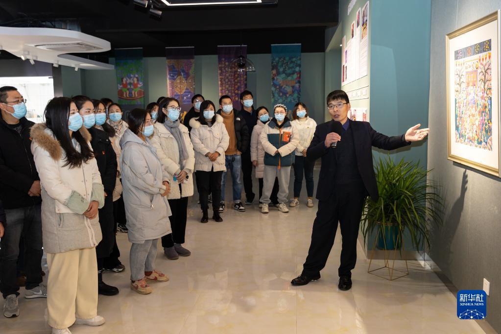 4 日上午,江苏省南京市六合区农民画美术馆内气氛热烈。一场以江苏省非物质文化遗产六合农民画为载体的党的二十大精神宣讲会正在举行。