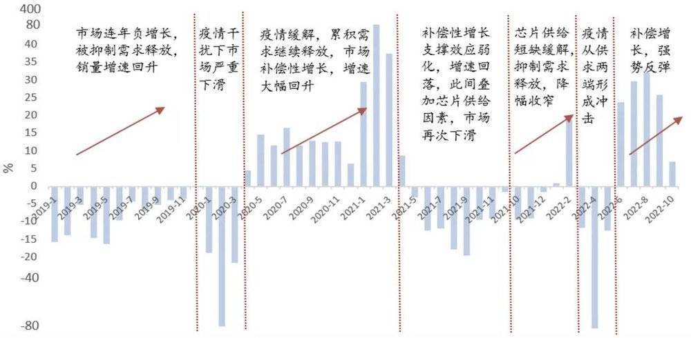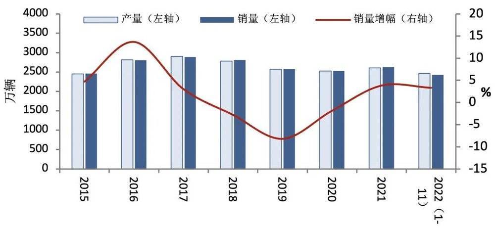 ![]() 本期文章由国务院发展研究中心市场经济研究所副所长王青执笔。基于一系列影响因素的分析,对2023年汽车市场的发展进行了预测:在宏观经济运行和疫情相对稳定的前提下,预计2023年汽车销量增速将有所回落,全年大致维持在2%左右,一季度和三季度市场压力相对较大。 在王青看来,我国汽车市场在中长期依然处在中速增长阶段,具有一定增长潜力。2023年汽车市场增速将有所回落,宏观经济运行和疫情仍然是影响全年市场的主要因素。 ![]() 受宏观经济运行特别是消费大盘等因素影响,2023年汽车市场增速将出现小幅回落,应适应汽车消费和汽车市场结构调整的方向和趋势,将鼓励扩大更新升级消费作为重要着力点。 一、汽车销量增长对稳定居民消费大盘的作用明显增强 2022年1-11月,国产汽车产销量分别达到2462.8万辆和2430.2万辆,同比分别增长6.1%和3.3%(见图1)。二季度和四季度受疫情和消费大盘回落影响较大(见图2)。 ![]() 图1 中国汽车产销量及增长(2015-2022),资料来源:中国汽车工业协会 ![]() 图2 2022年1-11月汽车月销量及增长情况,资料来源:中国汽车工业协会 汽车类商品占社会消费品零售总额比重超过10%,既是居民消费的大件,也是消费大盘中的重头。在华东地区疫情有所缓解后,2022年下半年汽车消费不断发力,对稳定消费大盘的作用明显增强。1-10月全国社会消费品零售总额同比增长0.6%,而汽车类商品增长对社零总额增长的贡献率达到72.2%,较上年同期提高了62个百分点(见图3)。无论与商品消费整体还是与主要消费品类相比,汽车类商品都展现出较强增长动力(见图4)。 ![]() 图3 汽车类商品对社零总额增长的贡献率变化,资料来源:国家统计局 ![]() 图4 汽车类商品与社零总额及主要品类增速比较,资料来源:国家统计局 进入三季度以后,汽车经销商库存压力开始加大。10月份经销商库存系数 达到1.76,已明显高于预警临界值;当月经销商库存预警指数 为59.0%,比上年同期提高6.5个百分点(见图5)。 ![]() 图5 2022年1-10月汽车厂商库存指数变化情况,资料来源:中国汽车流通协会 经销商库存系数=期末库存量/当期销售量。该系数由中国汽车流通协会每月定期发布,认为库存系数在0.8-1.2之间处于合理范围,而库存系数预警临界值为1.5。 经销商库存预警指数是中国汽车流通协会采用扩展指数的编制方法编制发布,以50%作为荣枯线,库存预警指数越高,反映出市场的需求越低迷。 2022年汽车销量继续保持增长,主要是上年四季度和当年一季度被抑制的消费需求持续释放,是补偿性增长。此前出现的市场下滑,主要是受国内外疫情、芯片供给短缺和供应链堵塞等因素影响。经测算,2021年下半年到2022年5月,大致有120-150万辆被抑制的汽车需求待释放。整体而言,这一时期汽车需求的基本面并未出现明显变化,市场持续回升的动力依然存在,而市场供求的主要矛盾更多体现在供给端(见图6)。 ![]() 图6 近年汽车月销量增速变化及阶段性影响因素,资料来源:中国汽车工业协会 值得关注的是,进入10月份以后,在宏观经济增长乏力以及全国大范围疫情下,居民就业、收入预期有所降低,已经开始对汽车消费产生不利影响,汽车销量增速在四季度也将出现明显回落。判断2022年汽车销量大致在2710-2760万辆,同比增长大致在4%左右。 二、2023年:综合判断汽车市场增速将有所回落 从中长期来看,我国汽车市场依然处在中速增长阶段,具有一定增长潜力。2023年汽车市场增速将有所回落,宏观经济运行和疫情仍然是影响全年市场的主要因素。 在我国汽车市场跨越千人汽车拥有量200辆的关口后,当前已经进入中低速发展阶段(见表1)。根据国际典型经验,千人汽车拥有量也将逐步回落到4%-5%的增长区间。 表1 发达国家或地区汽车需求增长的典型阶段特征,资料来源:国务院发展研究中心“中国经济增长十年展望课题组” 结合国际经验推算和Logistic模型预测,到2032年我国汽车总保有量将达到4.3亿辆,新车产销规模约为3100万辆,千人汽车拥有量大致在312辆。未来10年,我国新车销售规模将具备年均1.5%-2%的潜在增长率,而现阶段仍具备3%-4%的增长空间(见表2)。 表2 对我国中长期汽车市场的预测,资料来源:国务院发展研究中心“中国经济增长十年展望课题组” 汽车消费的中长期增长与宏观经济及消费大盘有明显的正相关关系(见图7),而疫情则会对汽车市场产生明显的短期影响。在2023年,这两个因素仍然会对汽车消费和汽车市场运行产生重要影响。在经济、收入和就业预期回落下,消费者压缩消费支出、增加预防性储蓄会延续一段时间,这对于目前已占主体的置换升级消费需求的释放十分不利。 ![]() 图7 我国汽车销量增速与GDP及社零总额增速的相关性,资料来源:根据国家统计局、中国汽车工业协会数据整理 注:图中圆形为汽车年销量增速与当年GDP增速之间的相关性,三角形为汽车年销量增速与当年社零总额增速之间的相关性。数据中剔除个别受政策影响较大的年份。 此外,汽车购置税优惠政策[1]的退出也会对市场产生一定影响。我国汽车市场已进入中速增长阶段,无论是促进效应还是透支效应,购置税优惠政策都较以往有所减弱。同时,本轮市场增长主要由补偿性增长支撑,增速并未明显高于潜在增长率,因此判断该政策会对2023年上半年销量形成一定透支,但影响不会过大。 结合以上分析,在宏观经济运行和疫情