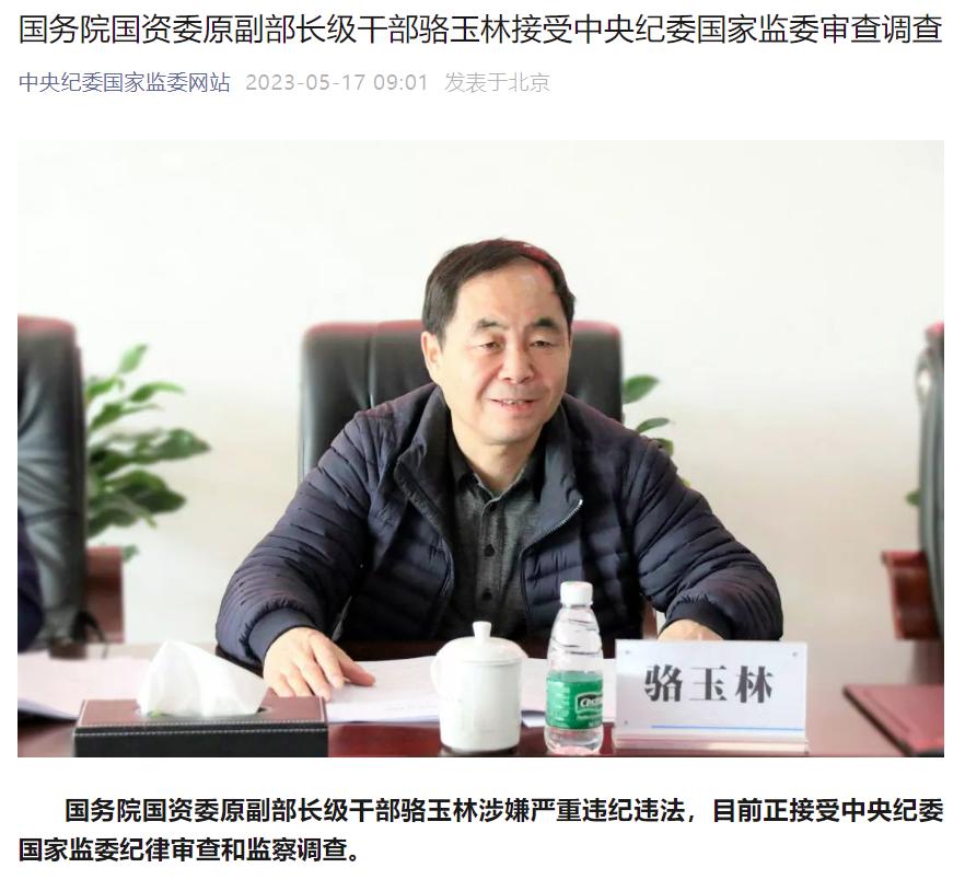 据中央纪委国家监委网站 5 月 17 日消息,国务院国资委原副部长级干部骆玉林涉嫌严重违纪违法,目前正接受中央纪委国家监委纪律审查和监察调查。